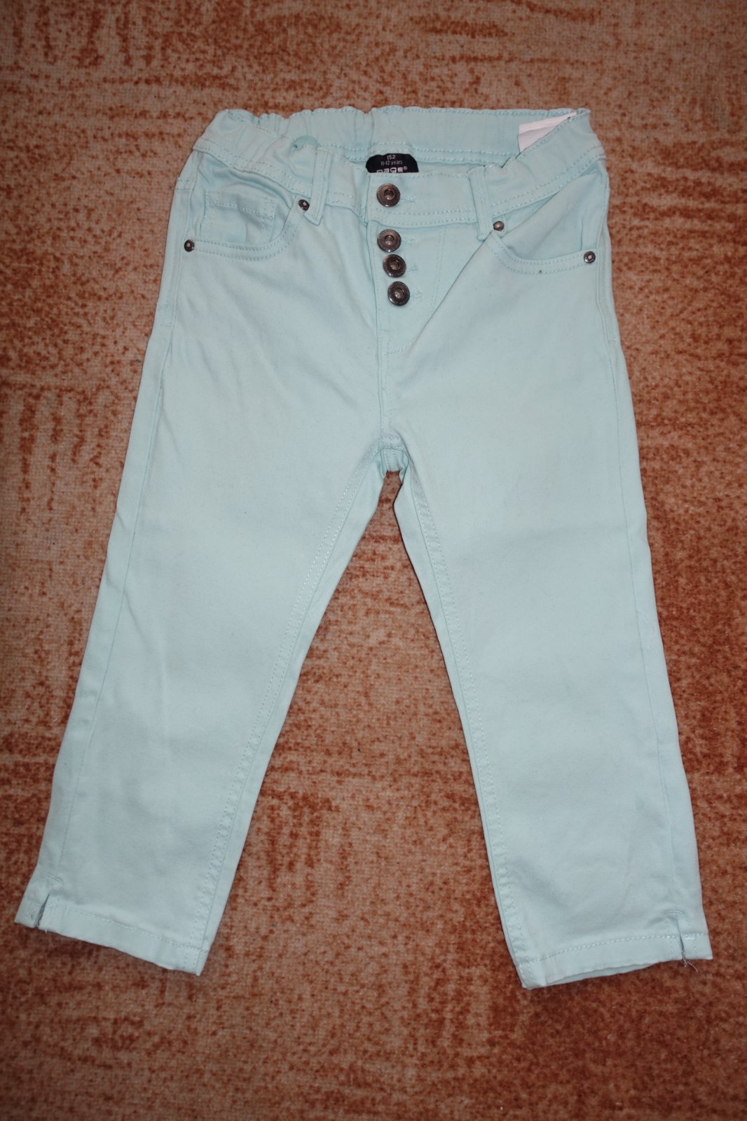 Dívčí riflové tříčtvrťáky Takko vel. 146-152, barva mint, v pase regulace, pružná riflovina, nošené do školy, top stav