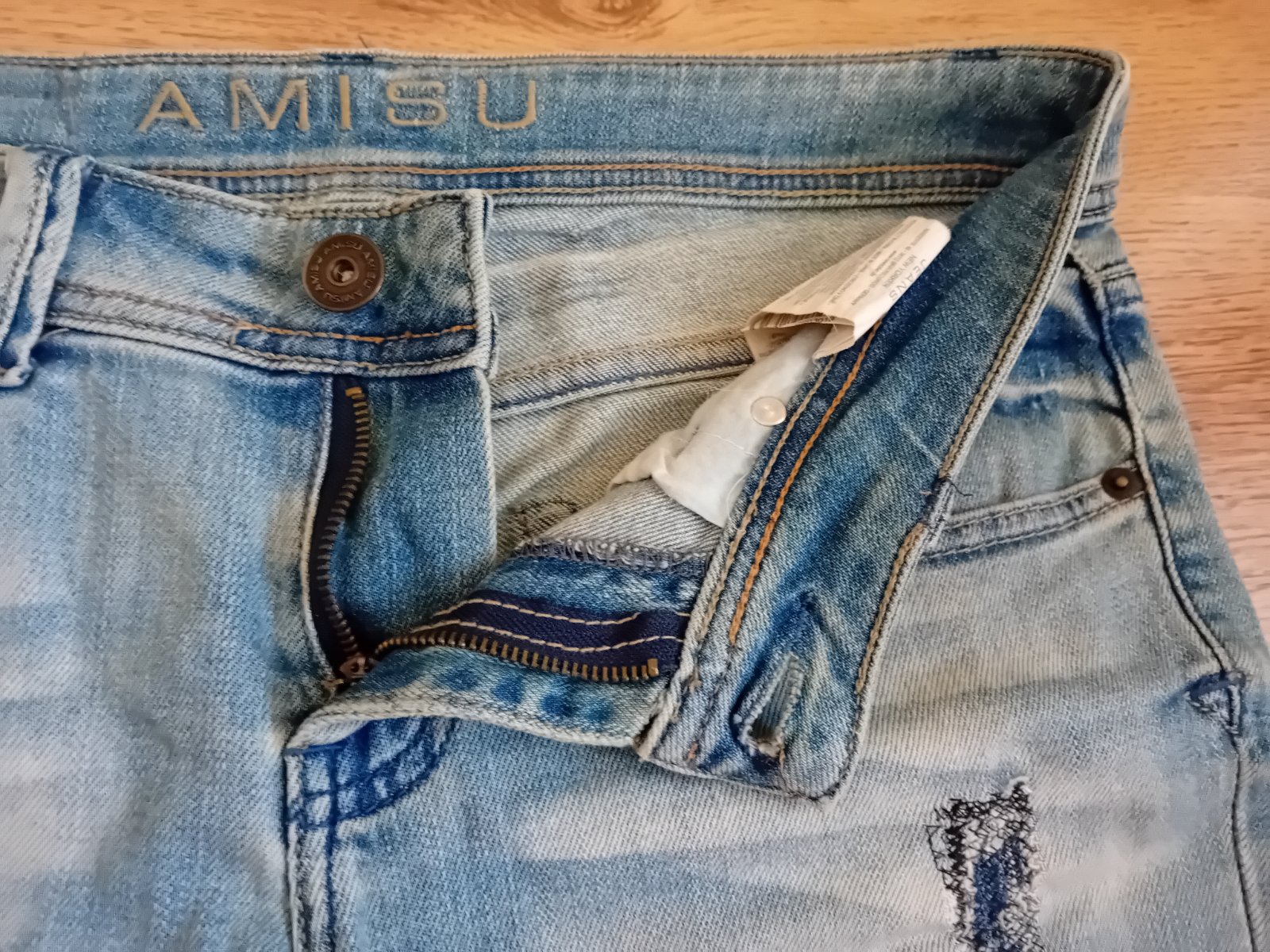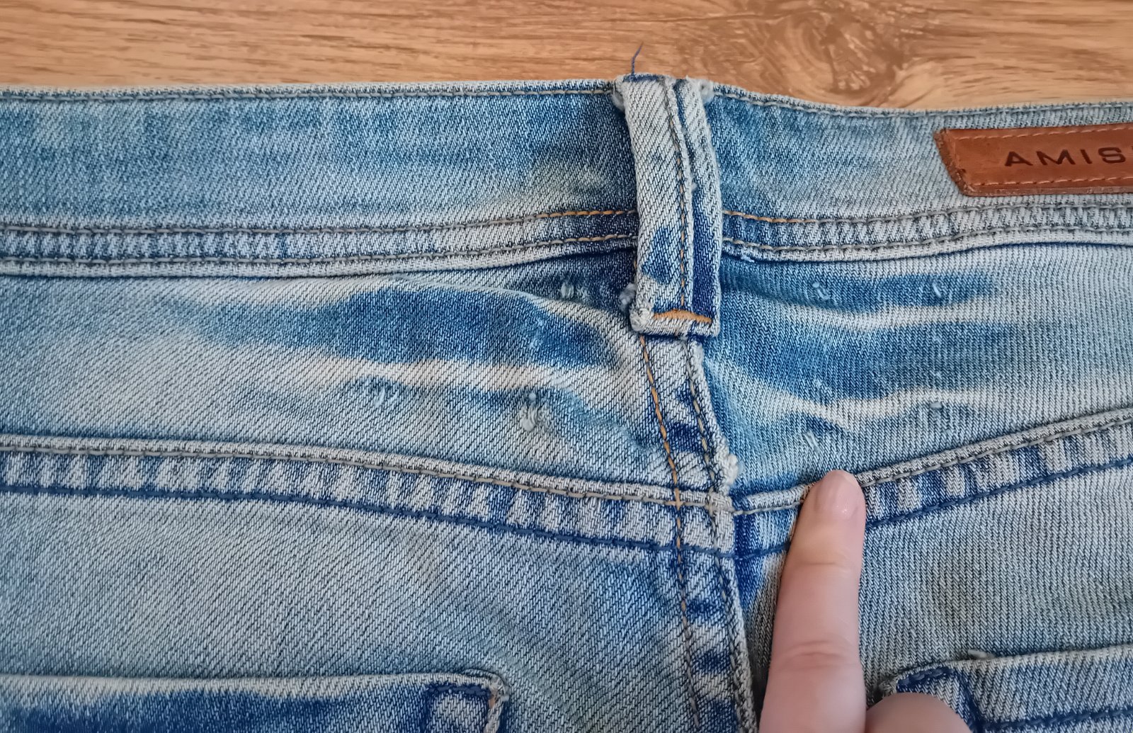 Na přední straně původní díry výrobcem zašité.
