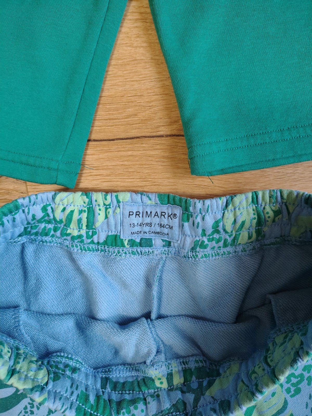 2pack chlapecké teplákové kraťasy Primark 164 (13-14 let) zelené/modré se zelenými listy, uvnitř smyčka. Skvělý stav jen po synovi.