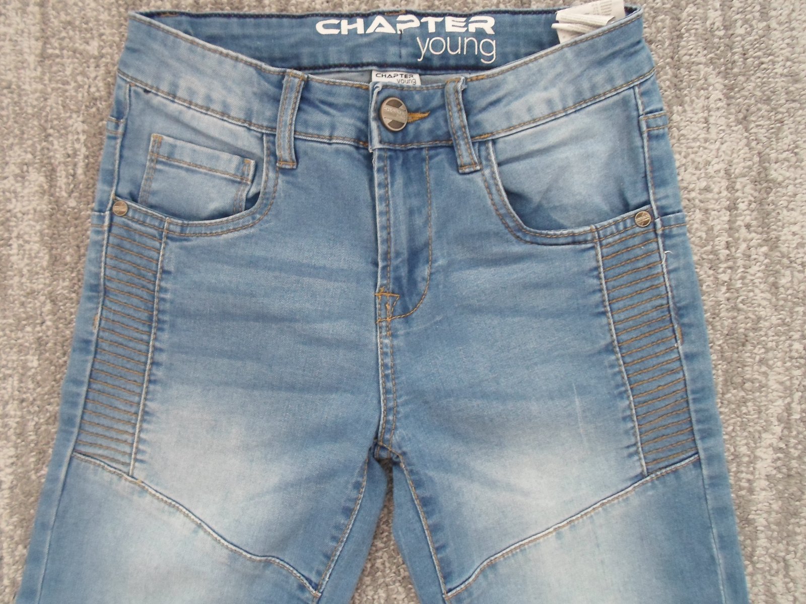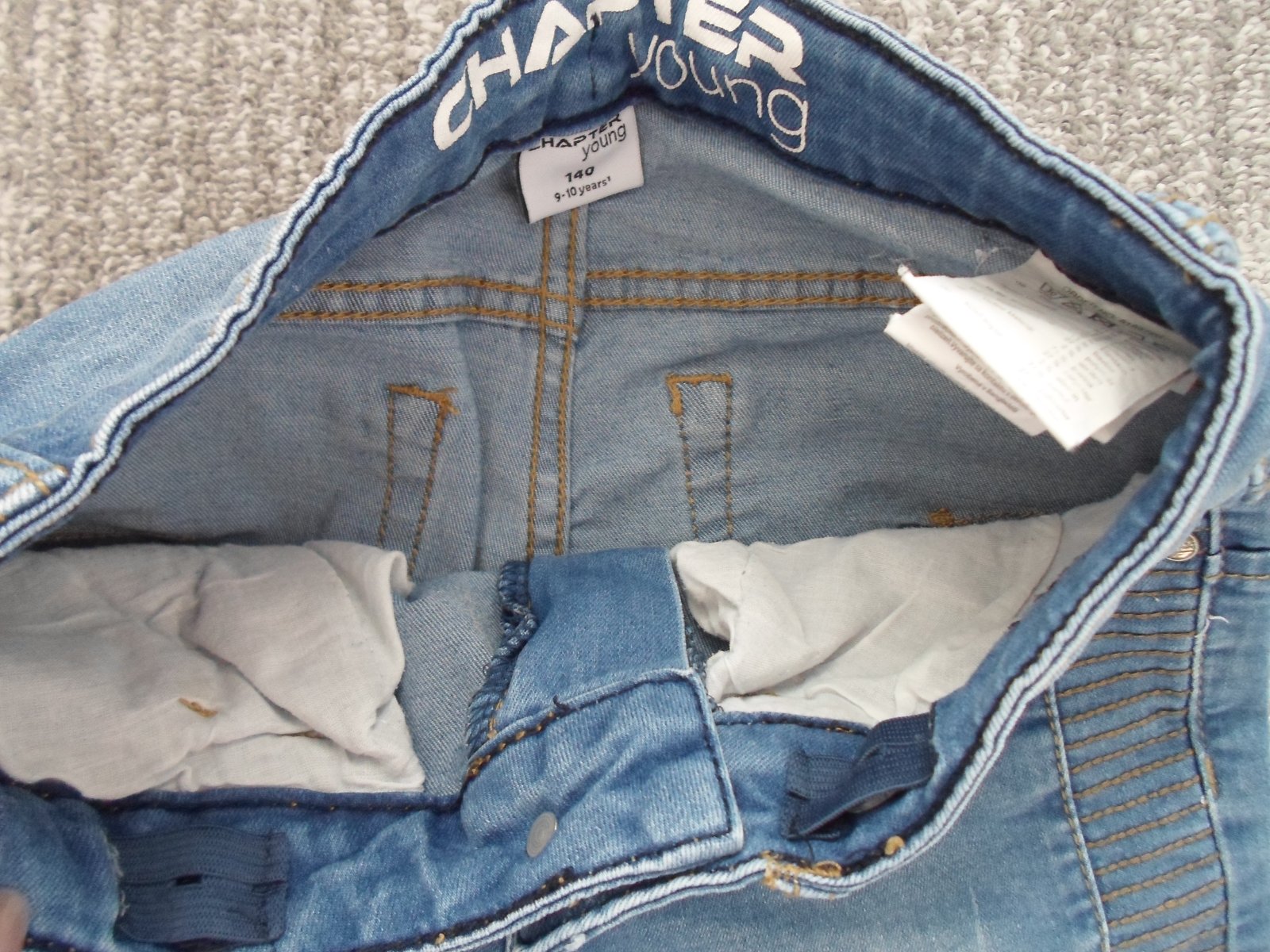Nenošené jen vyprané, regulace v pase. 71% bavlna, 27% polyester, 2% elastan, měkké pružné. Vel. 146, řekla bych že menší.