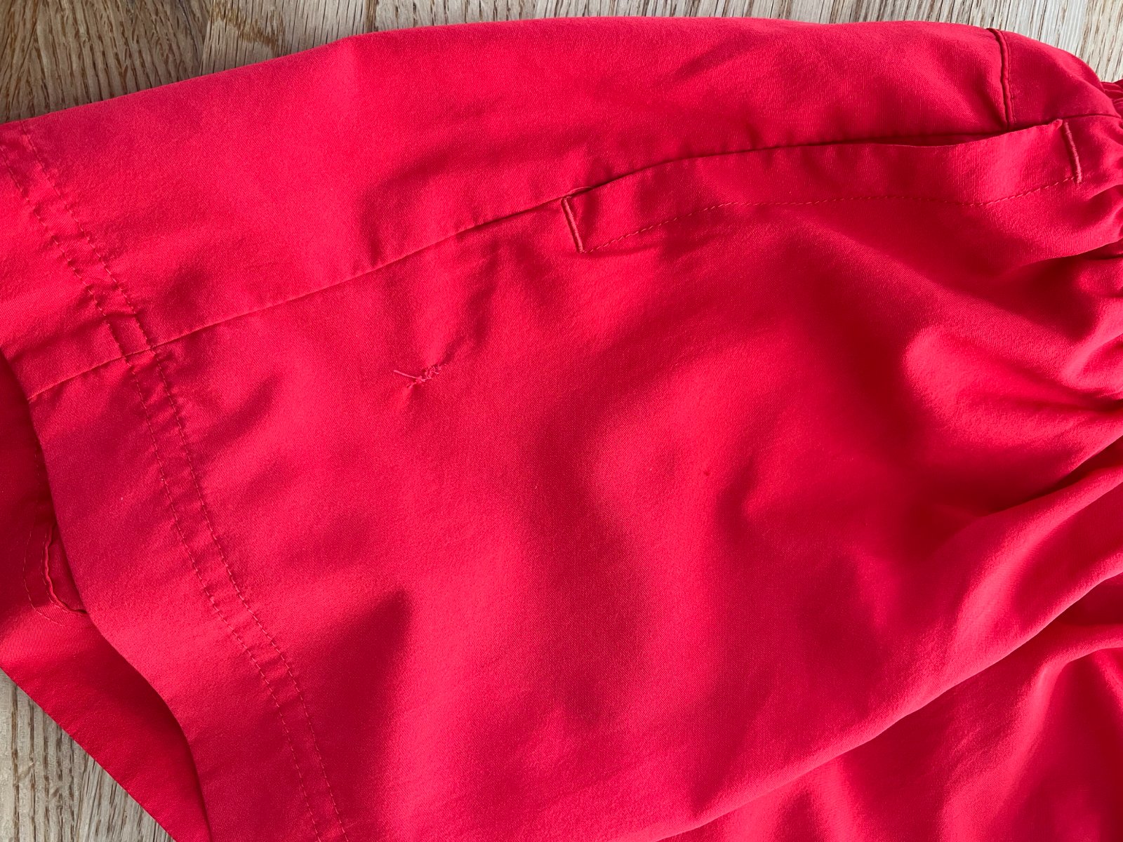Nošené, celkově ok, jen na pravé nohavici zašito (nafoceno a zohledněno v ceně).