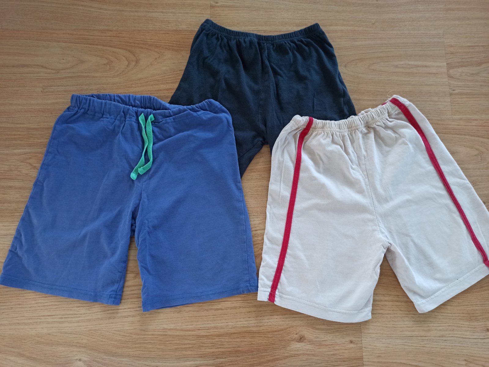 Prodám šortky s možností nošení od vel.122-134,pas 2x25-35cm,délka 30-36cm,černé jsou ustřiženy z tepláků,třeba někdo využije,cena za všechny je 50kč.