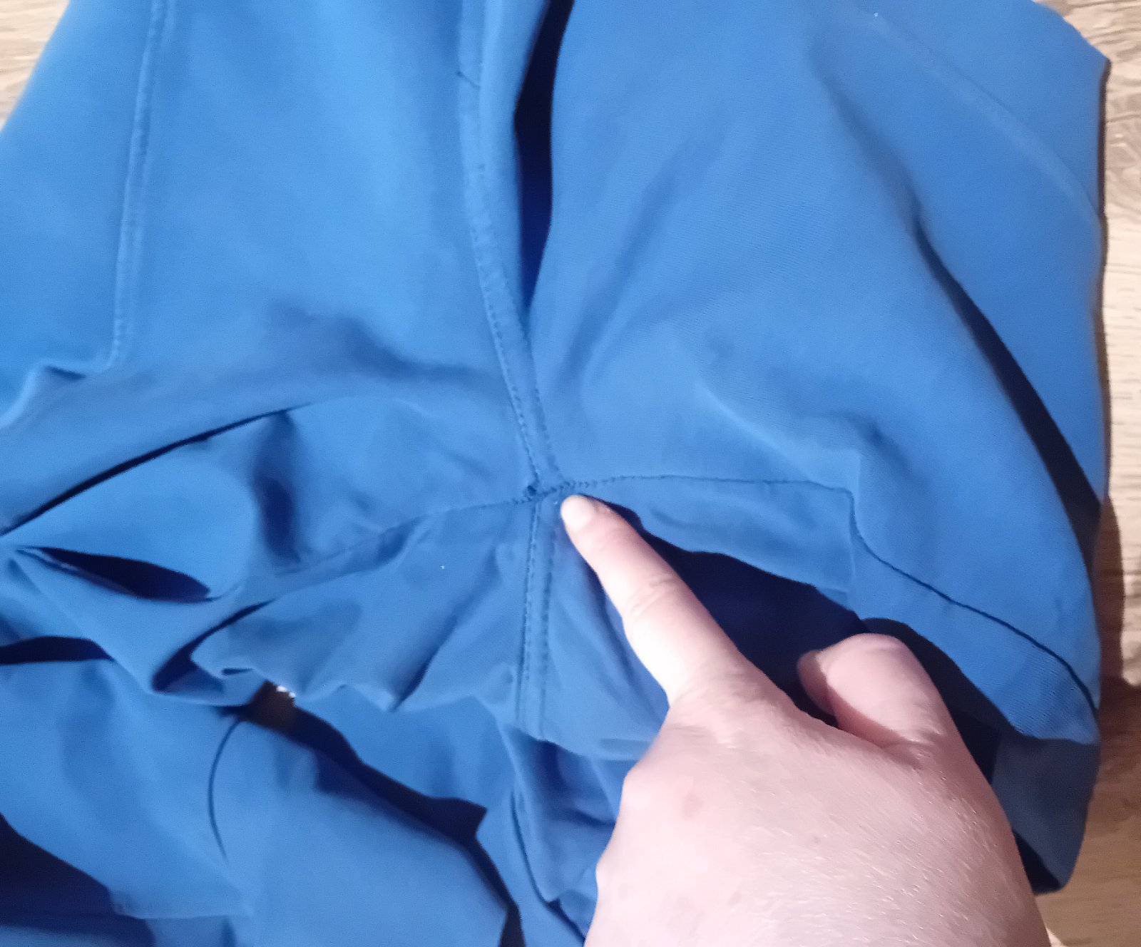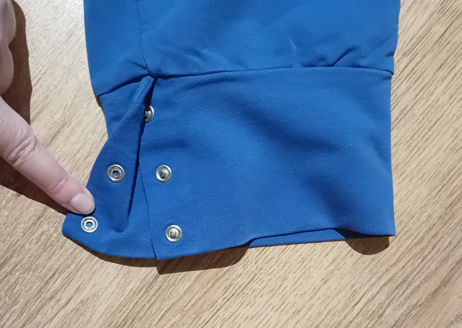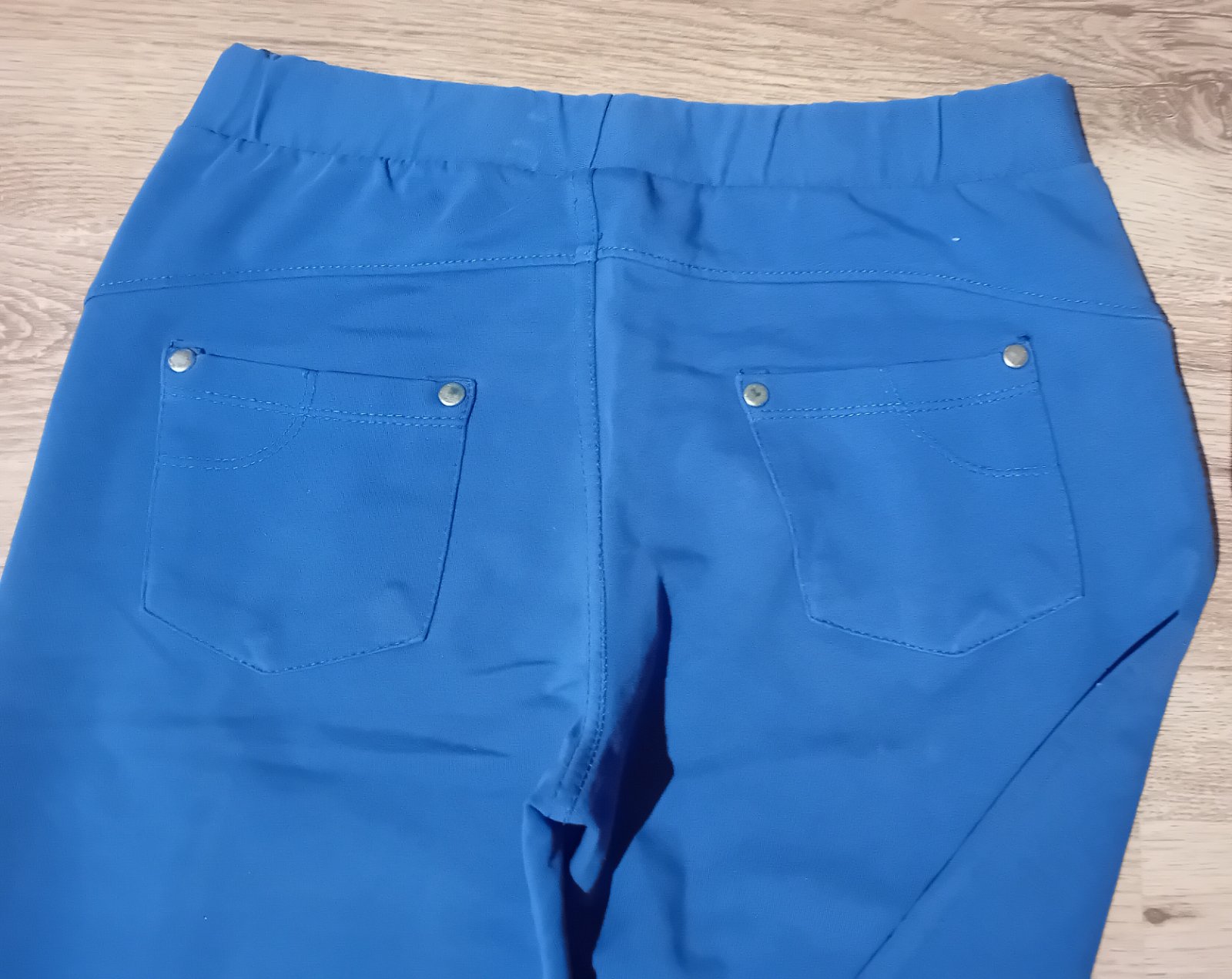 Drobné vady viz foto .V rozkroku malá dírka.Místy flíček viz foto kde je prst.Na spodní nohavičce zapínaní na drukry-jde odepnout.