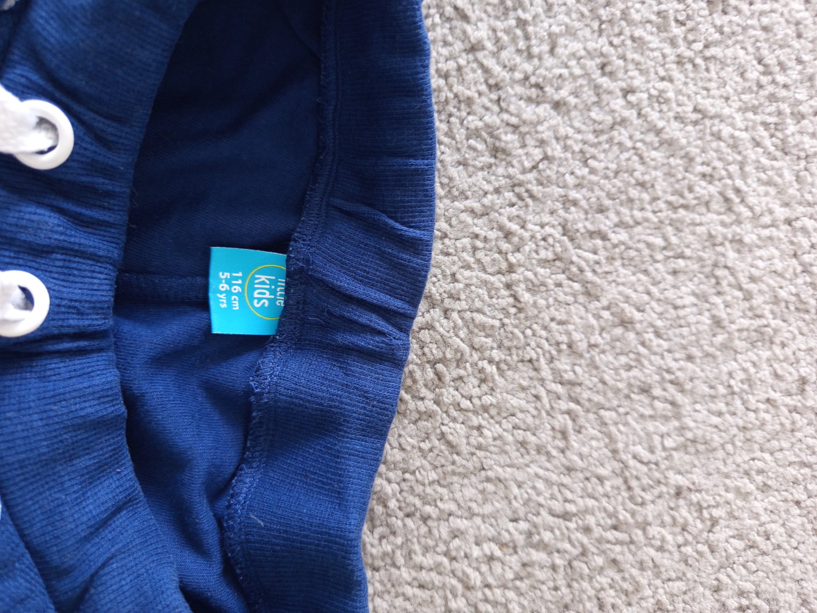 Tmavě modré teplákové šortky, bez vady, bez žmolků. Uvedená velikost je 116, 5-6 let. Šířka v pase 25 cm.