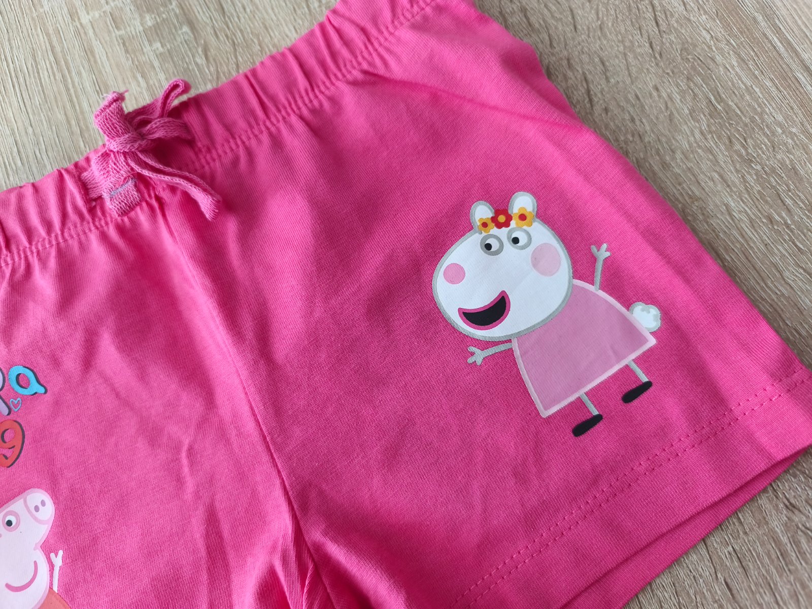 Krásné dívčí bavlněné kraťasy… nové s visačkou … vyrobeno z 100% bavlna … vel.86/92 … v pase na gumu a stahovací tkaloun ... aplikace na předním díle ...