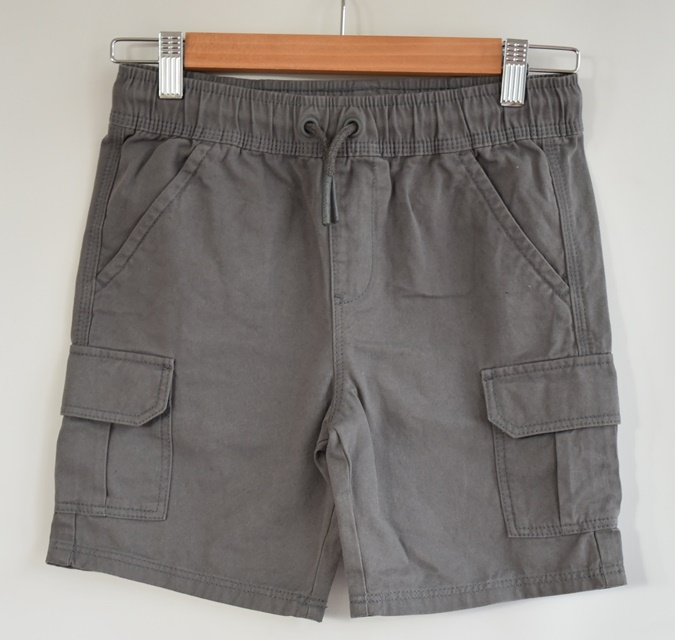Tm. šedé kraťasy, pružné nejsou, šňůrka funkční.