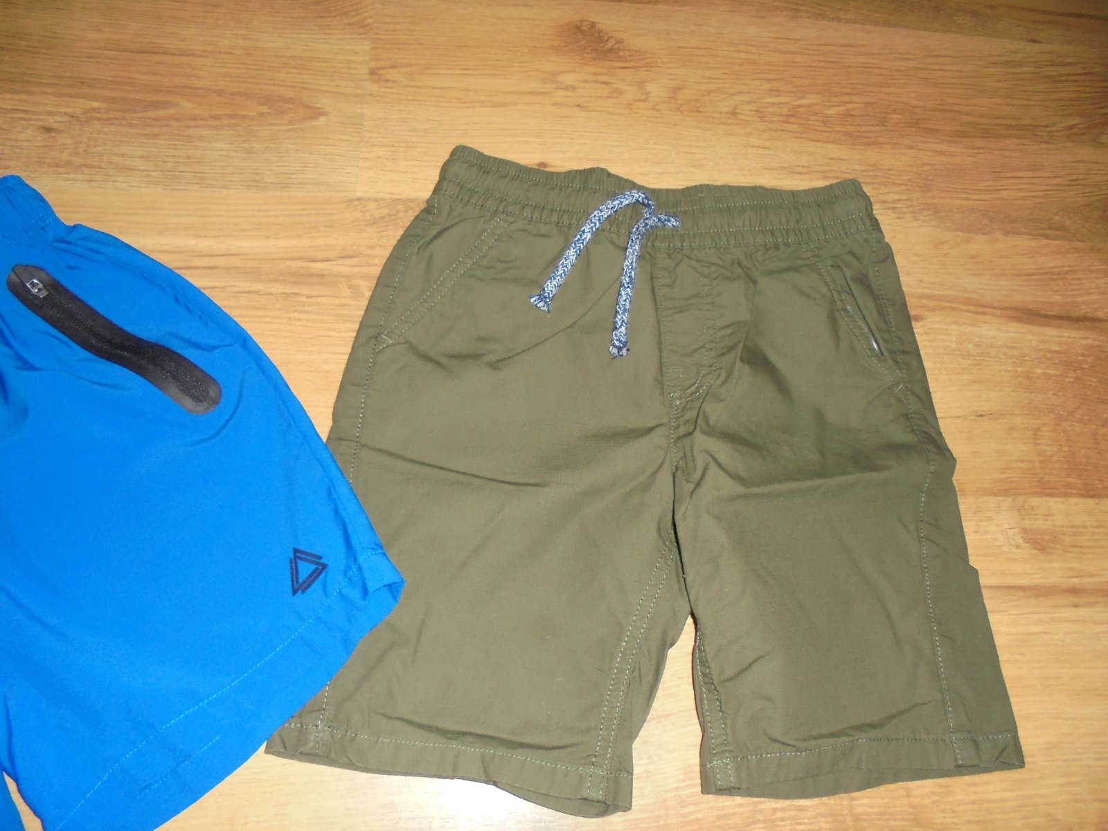 Kraťasy vel. 128/134, nošené a prané velmi málo, jsou v top stavu, bez vady a na parádu, modré sportovní, khaki plátěné zn. F&F, oboje skvěle poslouží. Cena je za vše. Poštovné a balné: balíkovna 80,-Kč, zásilkovna 90,-Kč.