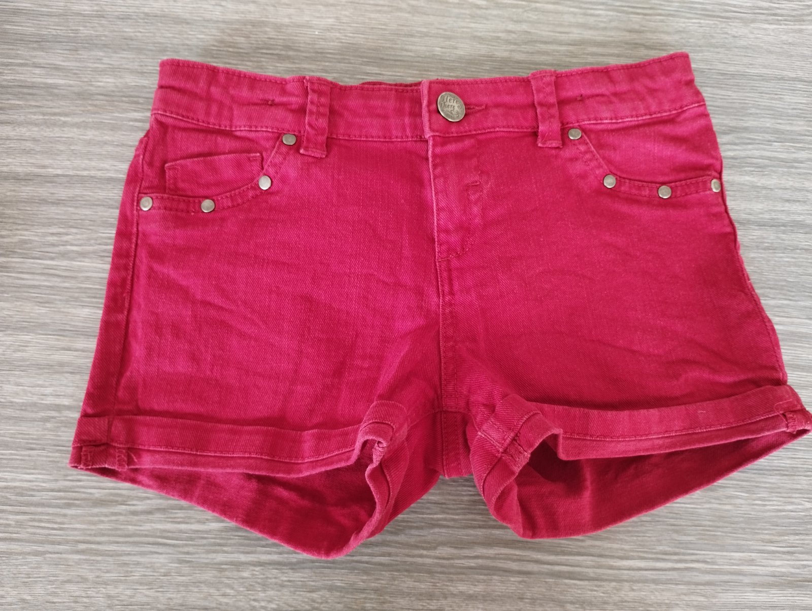 Ružové džínsové kraťasky z príjemného elastického materiálu. Päť vreciek, zapínanie na zips a gombík. Pás je prispôsobiteľný, sú aj pútka na opasok. Materiál: 67 % bavlna, 30 % polyester, 3 % elast...