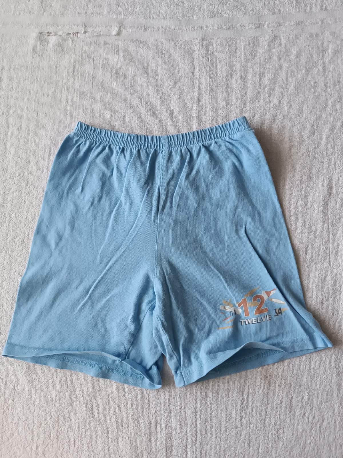 Teplákové kraťasy se dvěma kapsičkami. V pase funkční šňůrka. Barva odpovídá hlavní fotce. Pod levou kapsou pidi dířečky (viz foto). Psaná velikost 110/116. délka 35 cm pas 26,5 cm