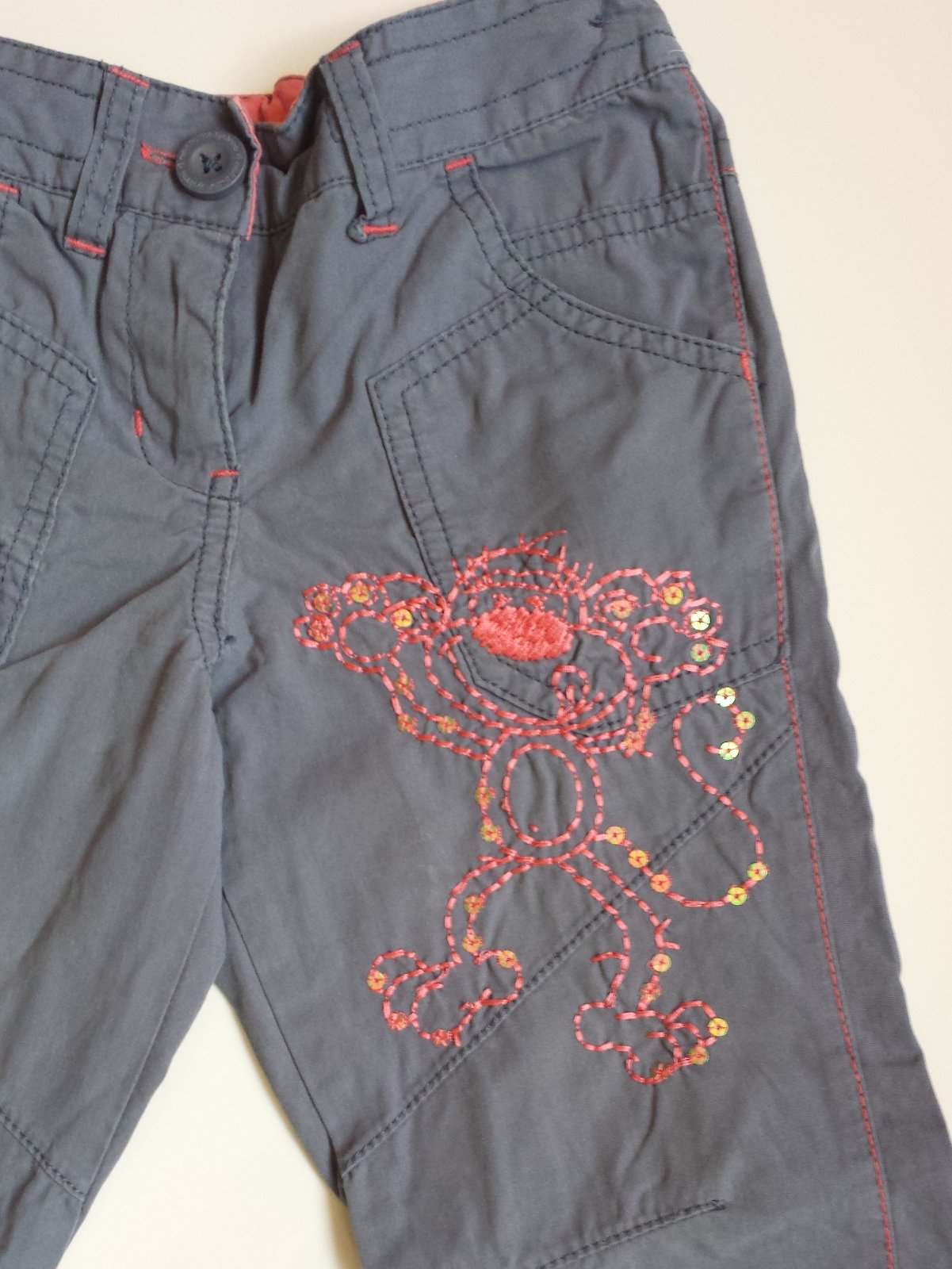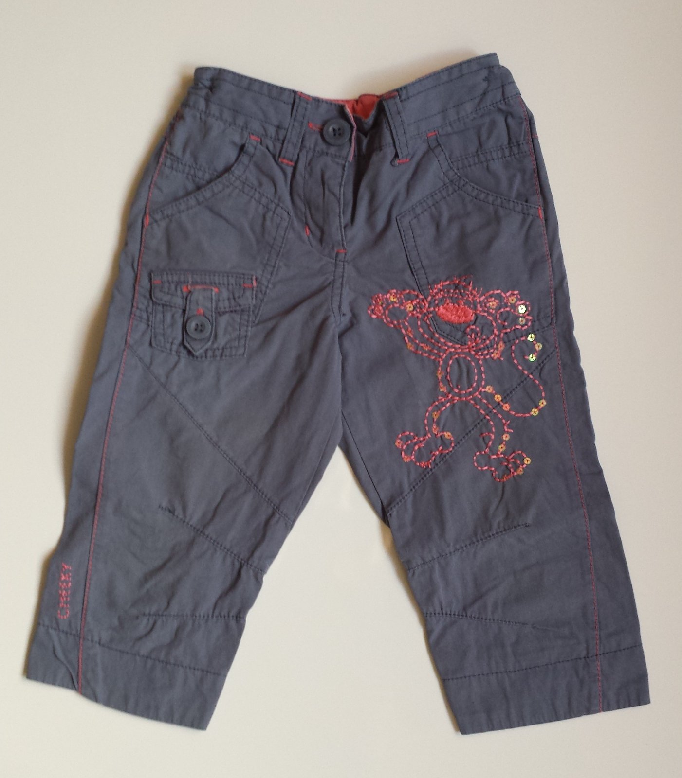 G46 Dívčí 3/4 plátěné kalhoty Opice vel. 110