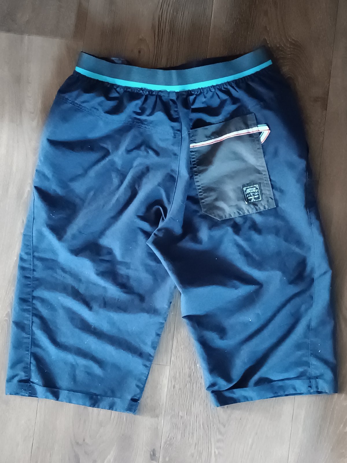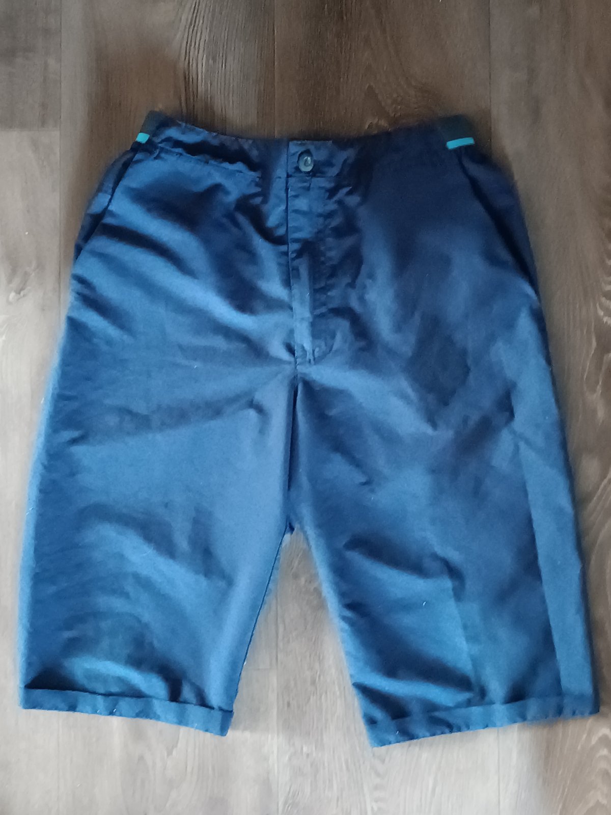 Prodám tmavě modré chlapecké kraťasy Quechua, vel. 14-15 let, ideální pro výšku postavy 161-172 cm), kupované v Decathlonu, materiál: 100% polyester. Vepředu 2 kapsy, vzadu jedna, v pase pružné, poutko, minimálně nošené - hezký stav.