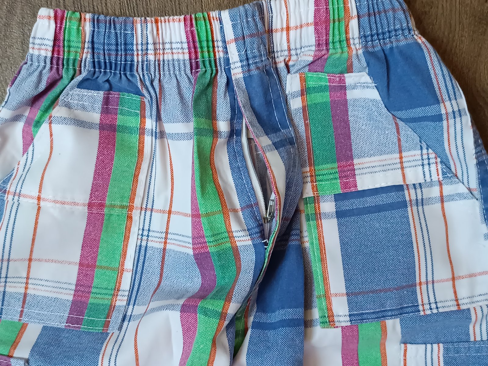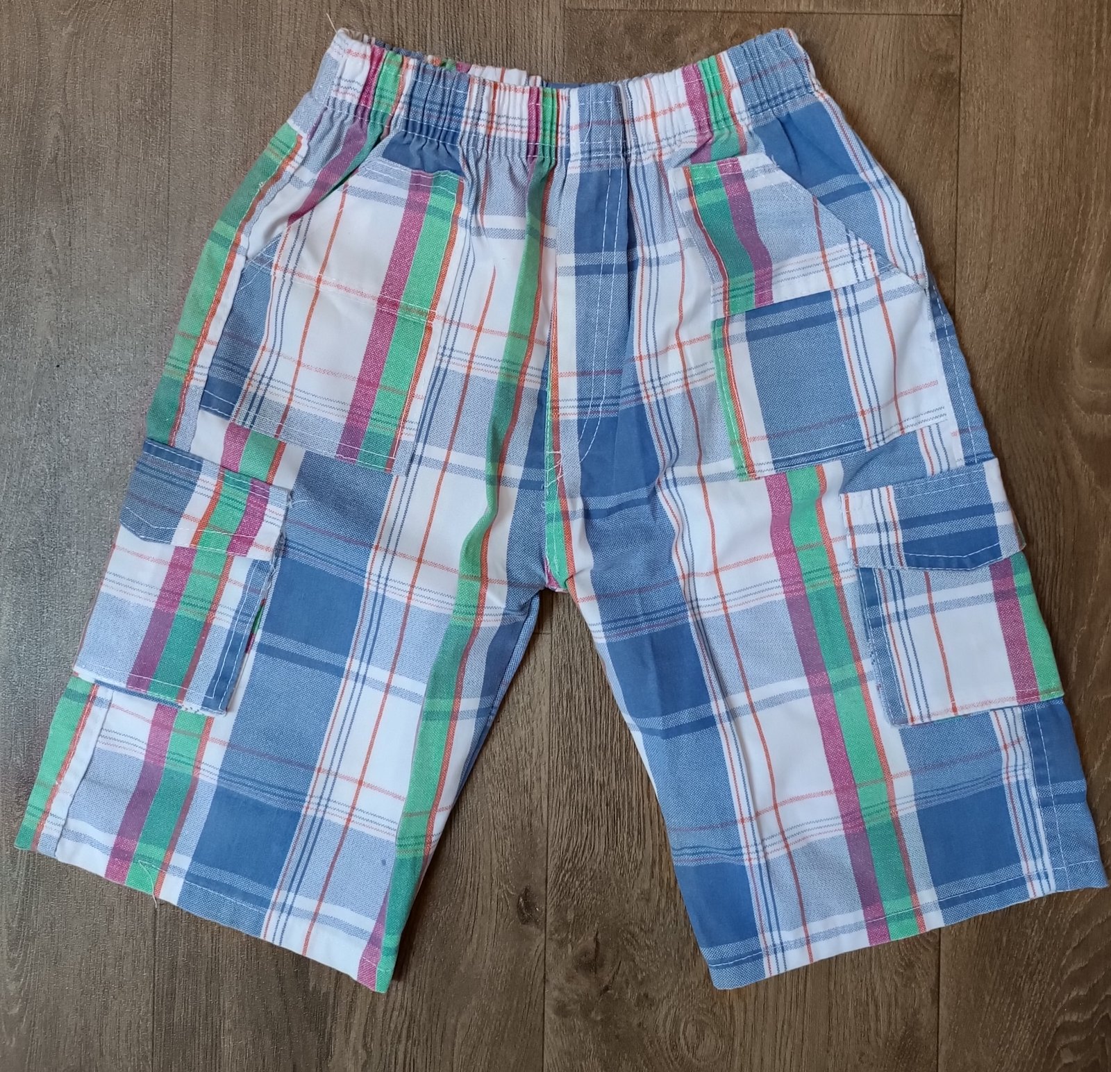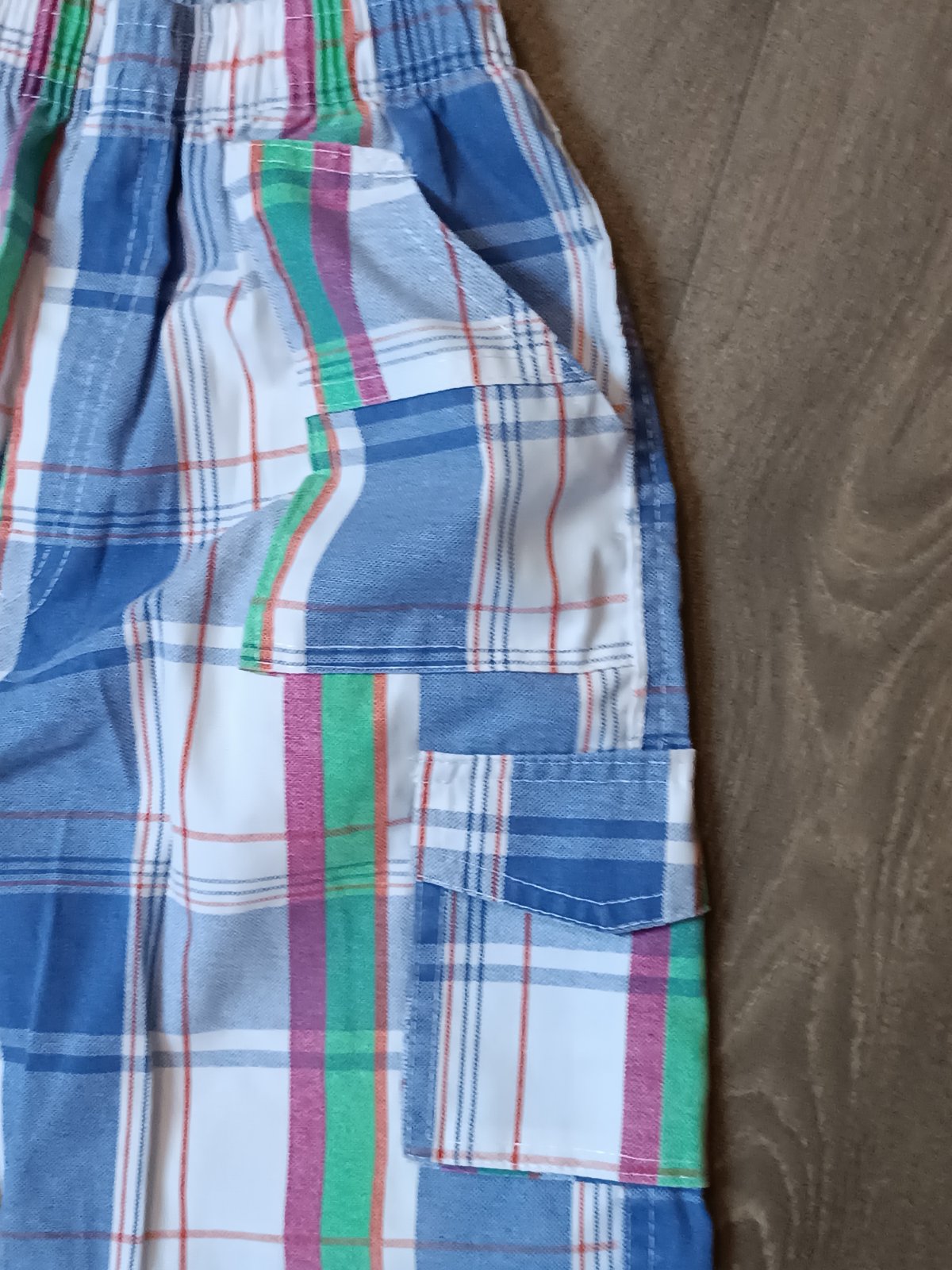 Prodám chlapecké kraťasy, vel. 110/116, v pase do gumy, zapínání na zip. Šířka v pase 2x25 cm, při maximálním natažení až 2x38 cm. Celkem 5 funkčních kapes - dvě po stranách, dvě v přední části a jedna vzadu.