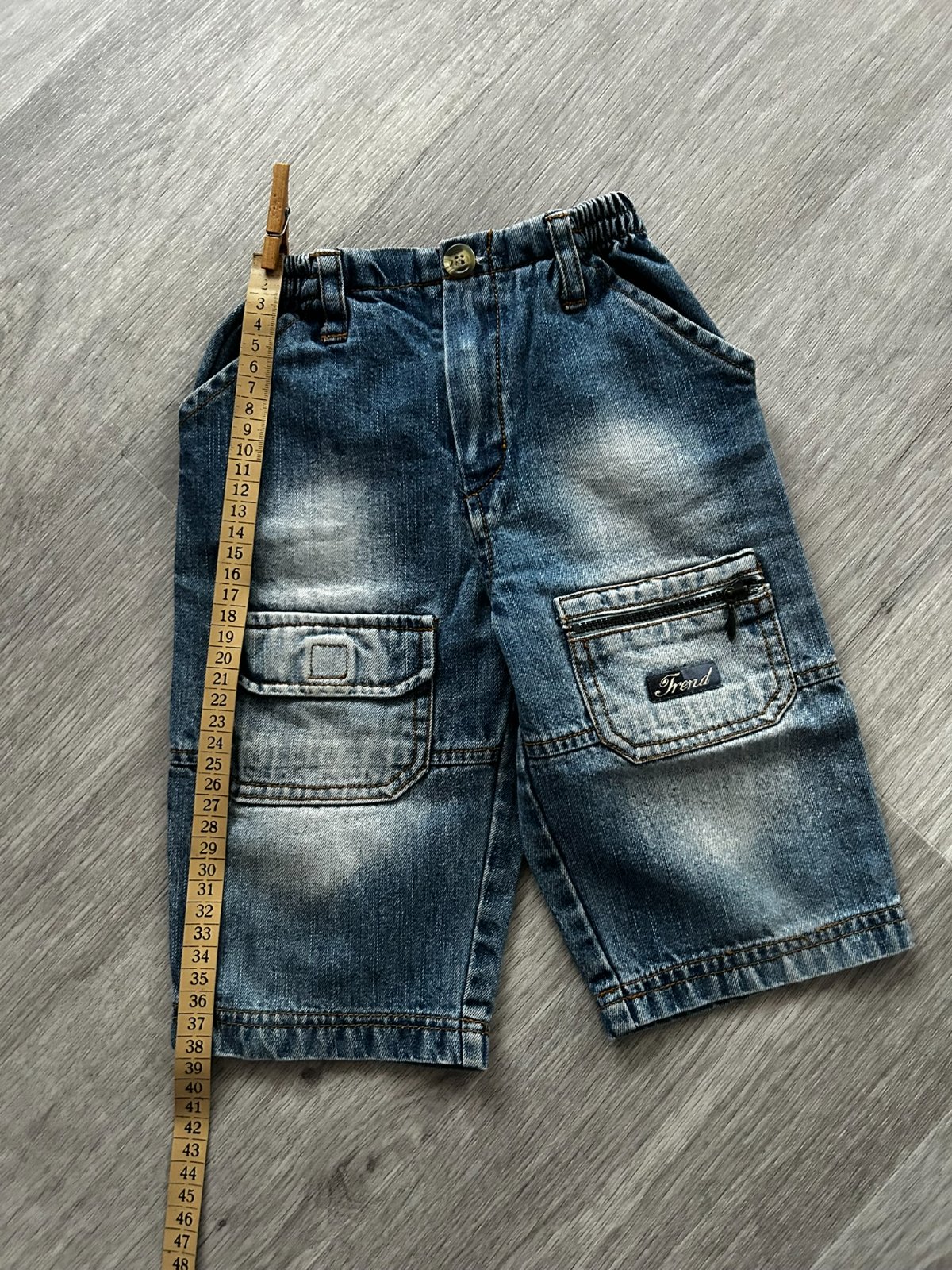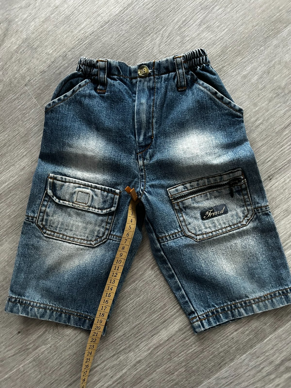 Prodám dětské džínové kraťasy Trend velikost 74/80, ostatní rozměry viz. fotografie. V TOP stavu. V pase guma, nemá regulaci, knoflík a zip. Na přední straně 4 kapsy, vzadu 2. Cena 80 Kč plus zásilkovna či balíkovna.