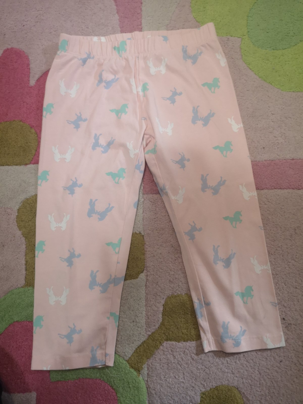 legíny jsou v perfektním stavu. tříčtvrteční. Rozměry: celková délka 68 cm, šíře pas v klidu 2x28 cm, šíře pas roztažené 2x37 cm, nohavice od rozkroku 47 cm, délka sedu 24 cm. Uváděná velikost je 1...