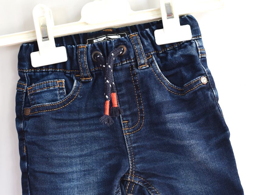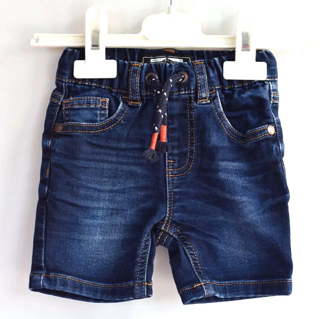 Tm. modré džínové kraťasy.Pružné