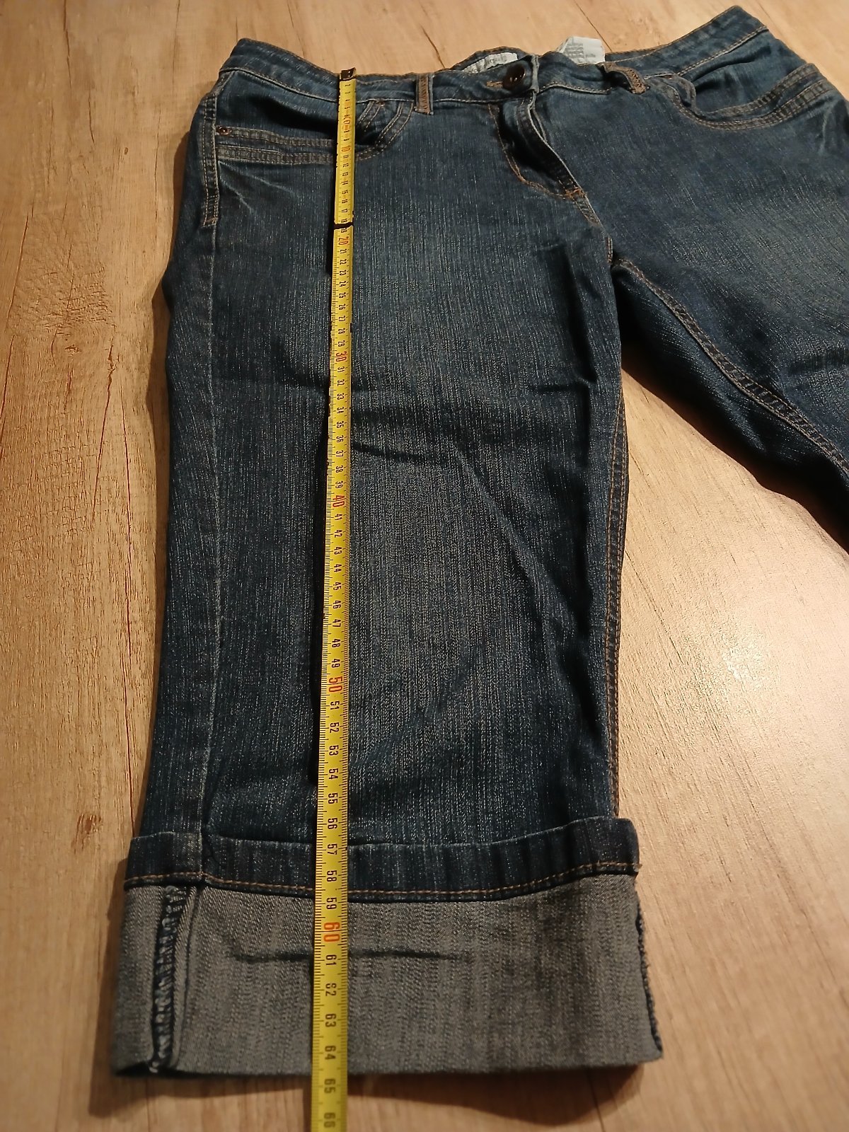 Hnede dzinove 3/4 kalhoty s ohrnutymi lemy