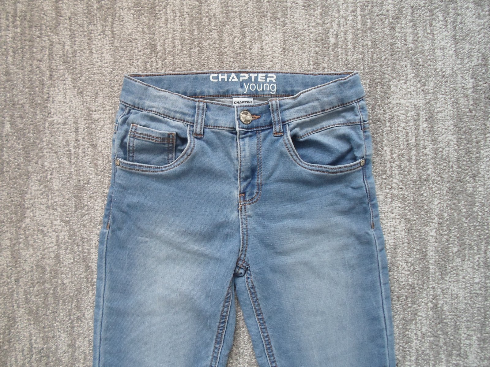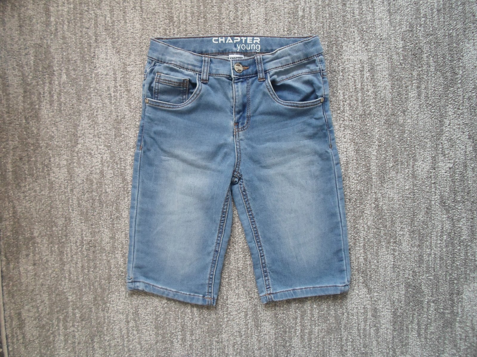 Ve skvělém stavu bez vad, vel. 152, ale jsou menší, 78% bavlna, 21% polyester, 1% elastan, regulace v pase.
