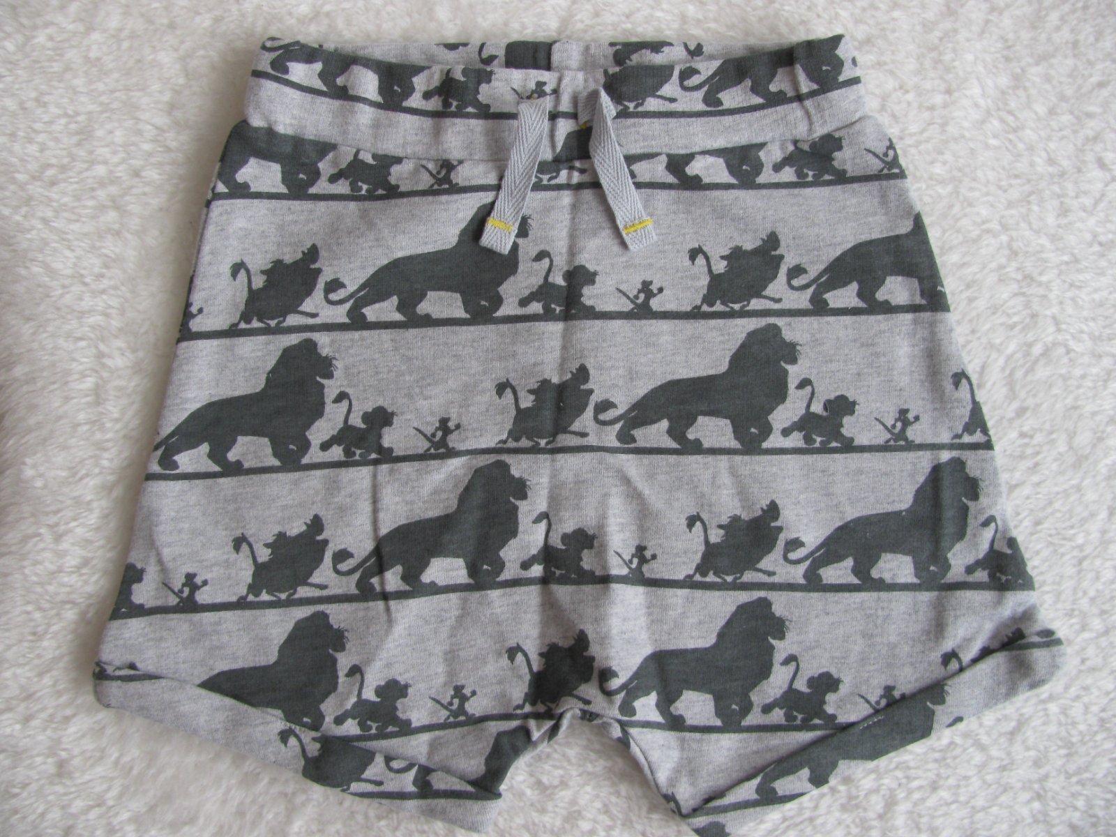 Krásné šedé bavlněné šortky, s potiskem zvířátek z Disneyho pohádek, v pase do gumy, 100% bavlna.