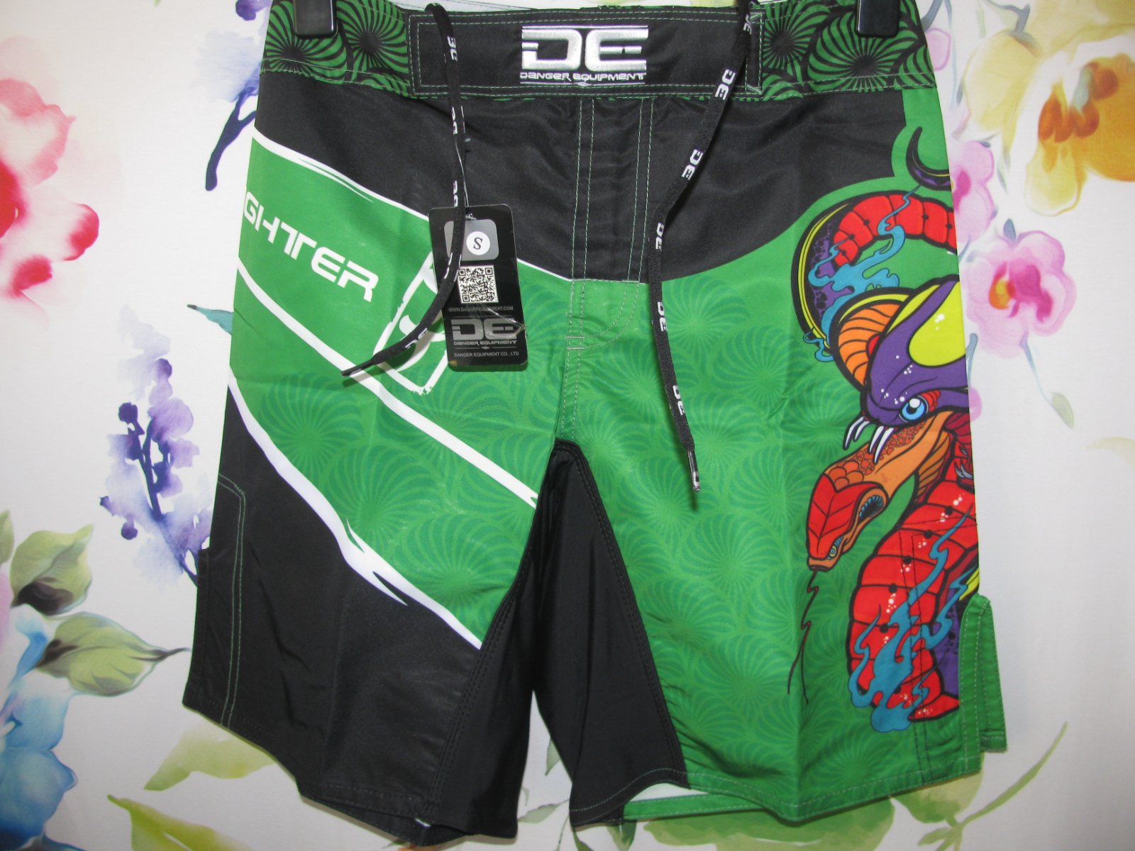 Stylové MMA šortky v pestrém designu od značky Danger Equipment. Klasický střih se zapínáním na suchý zip, lehký rychleschnoucí materiál. Materiál: polyester