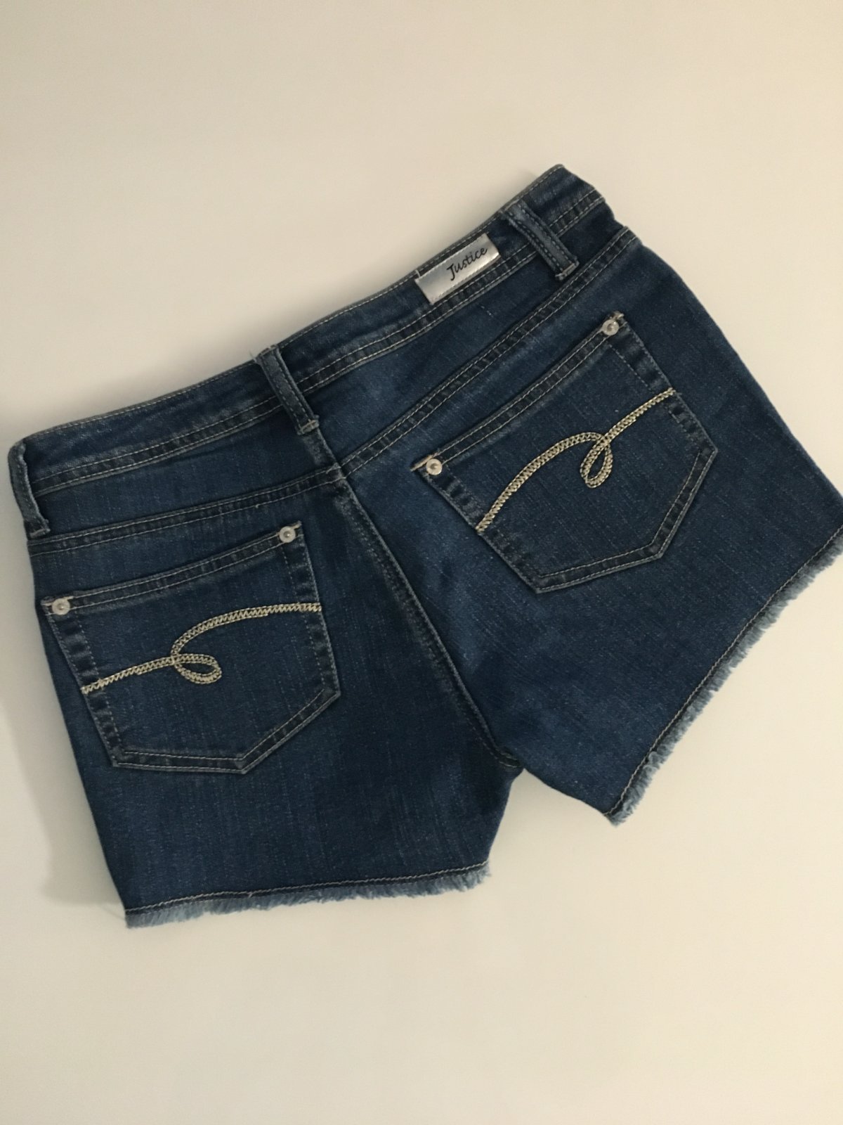 Je uvedena dívčí americká vel. 16, což u nás odpovídá vel. S: boční délka 26 cm, pas 40 cm, přední sed 22 cm, zadní 34 cm.
