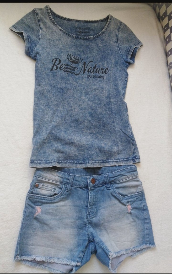 Prodám velmi pěkné dívčí džínové kraťasy 152 s motivem rozpárané látky z Kiku. Kdo by měl zájem, mám i dlouhé džíny ve velikostech 146 a 152 také z Kiku. Na těch jsou díry na kolenou, nikoliv jako originální design. Dřív by mě ani nenapadlo takové džíny nabízet, jedině tak k ustřižení na delší kraťasy, ale dnes, kdy se toto nosí, nabízím za 50 Kč, pokud by si mladá slečna chtěla dodělat další rozpárané aplikace podle vlastní fantazie. Jinak jsou totiž i ty dlouhé džíny v super stavu.