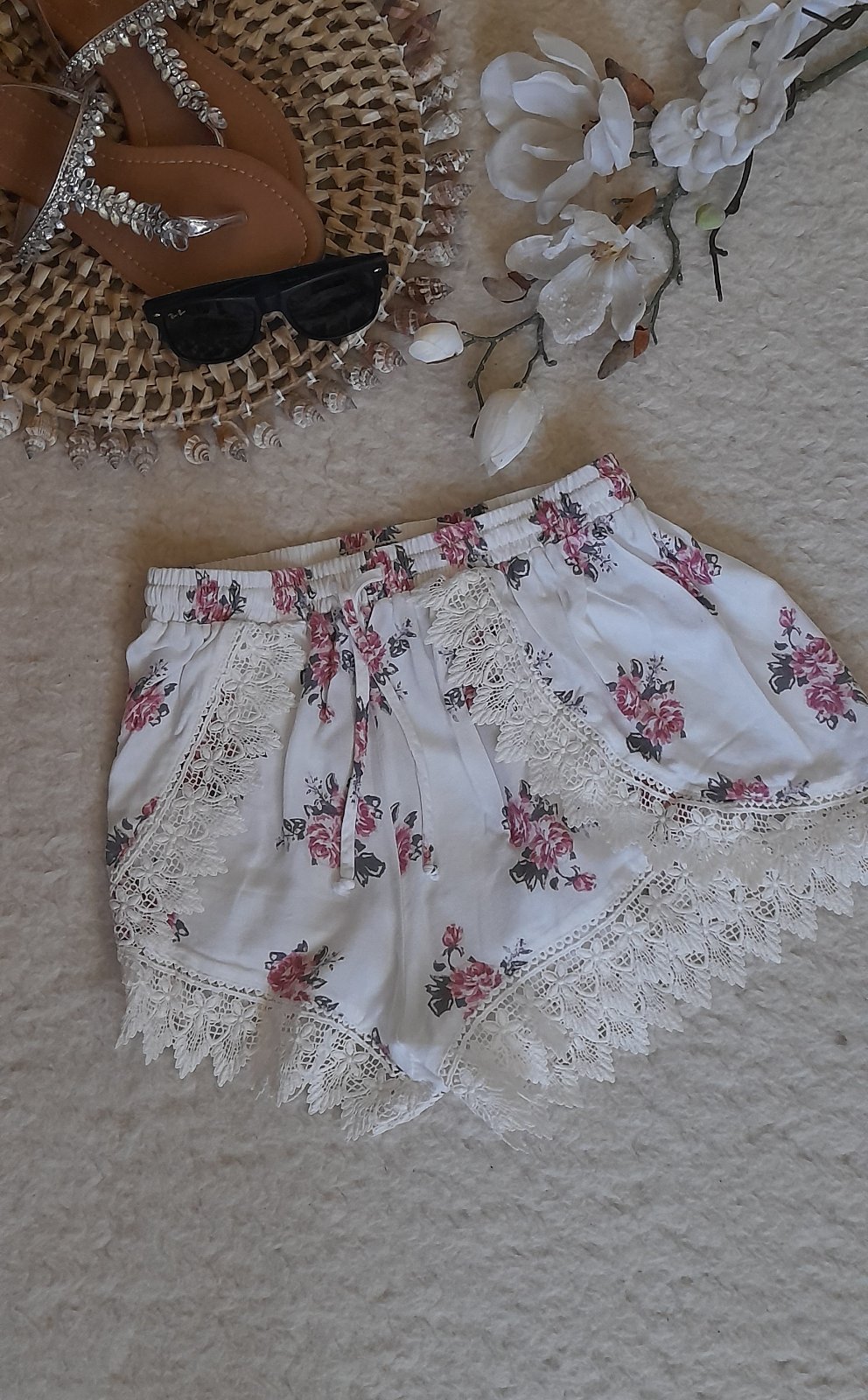 H&M viskózové květinové kraťasy s krajkou