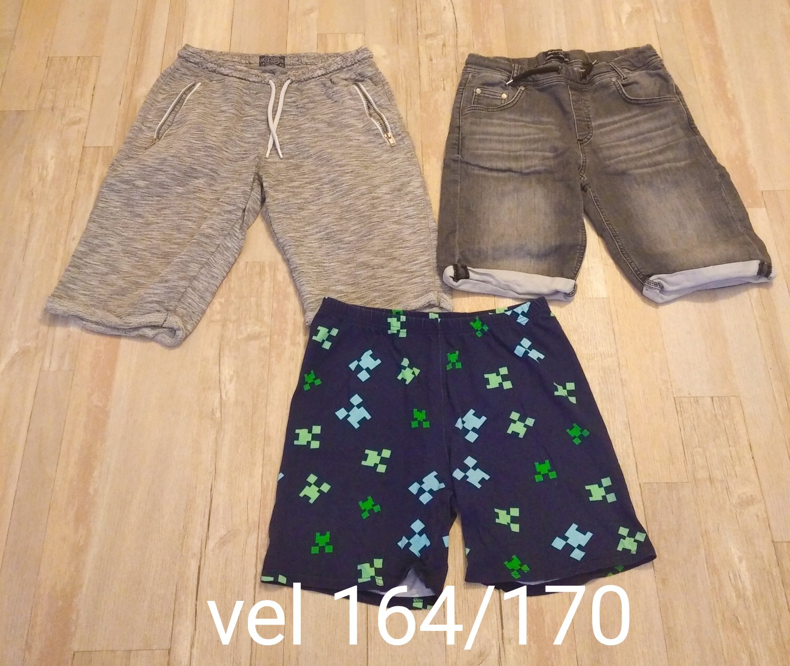 Prodám kraťasy vel.170 vrchní levé zašité 40kc, riflové bez závad 75kc Spodní na spaní za 40kc