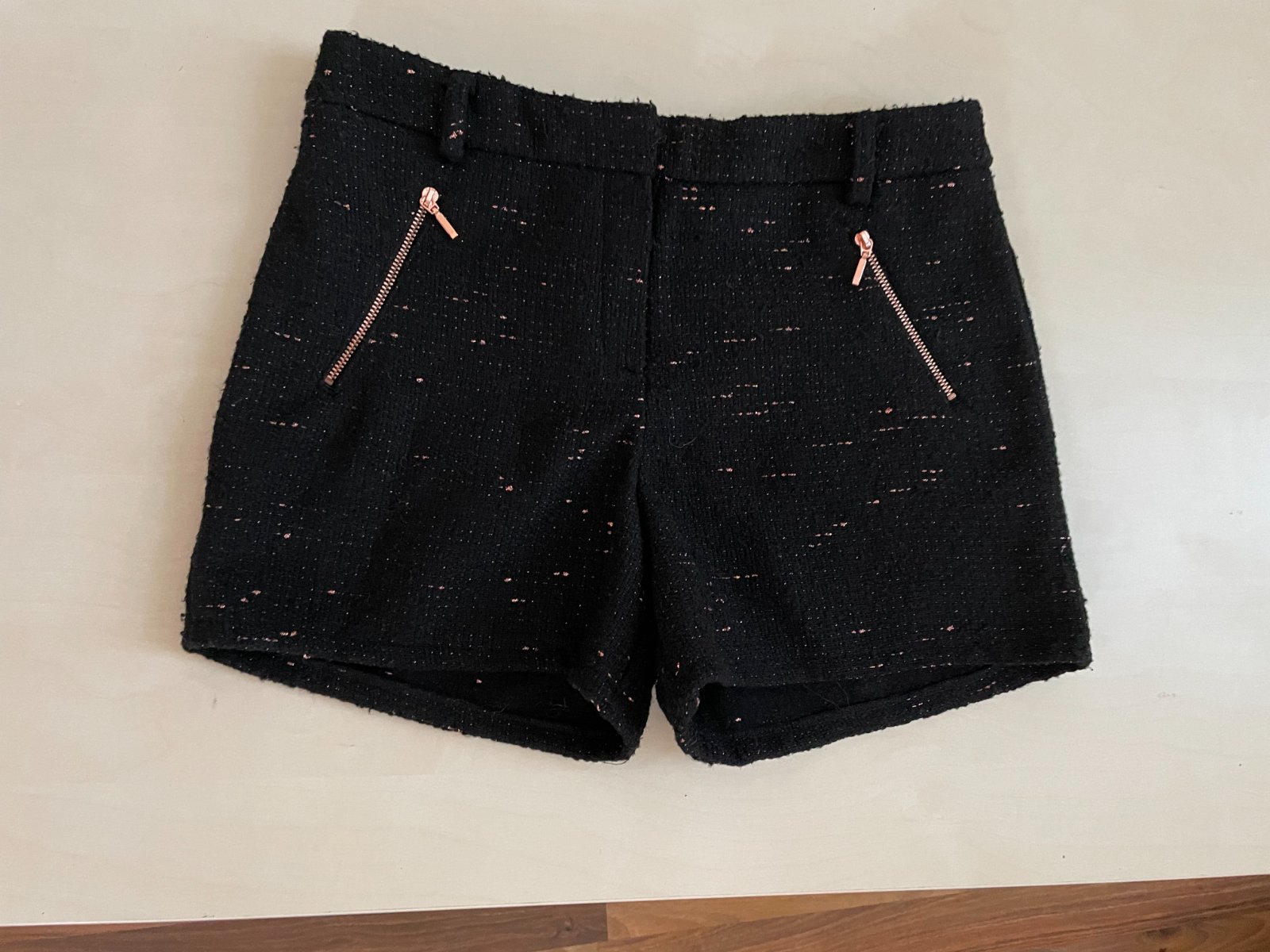 let. nabízím k prodeji tyto černé úpletové šortky s třpytem, vel dětská 13-14 let, 158/164, ale asi možno i XS, měřte, George. Materiál podobný jako vlněnný. Zvenku uzlíková struktura, zevnitř hladký. Nošené málo, ale upadl jim vnitřní háček. Jde přišít, ale nevadí na zapínání je tam ještě vnitřní knoflík. Nošené, až na háček bez vad, krásné