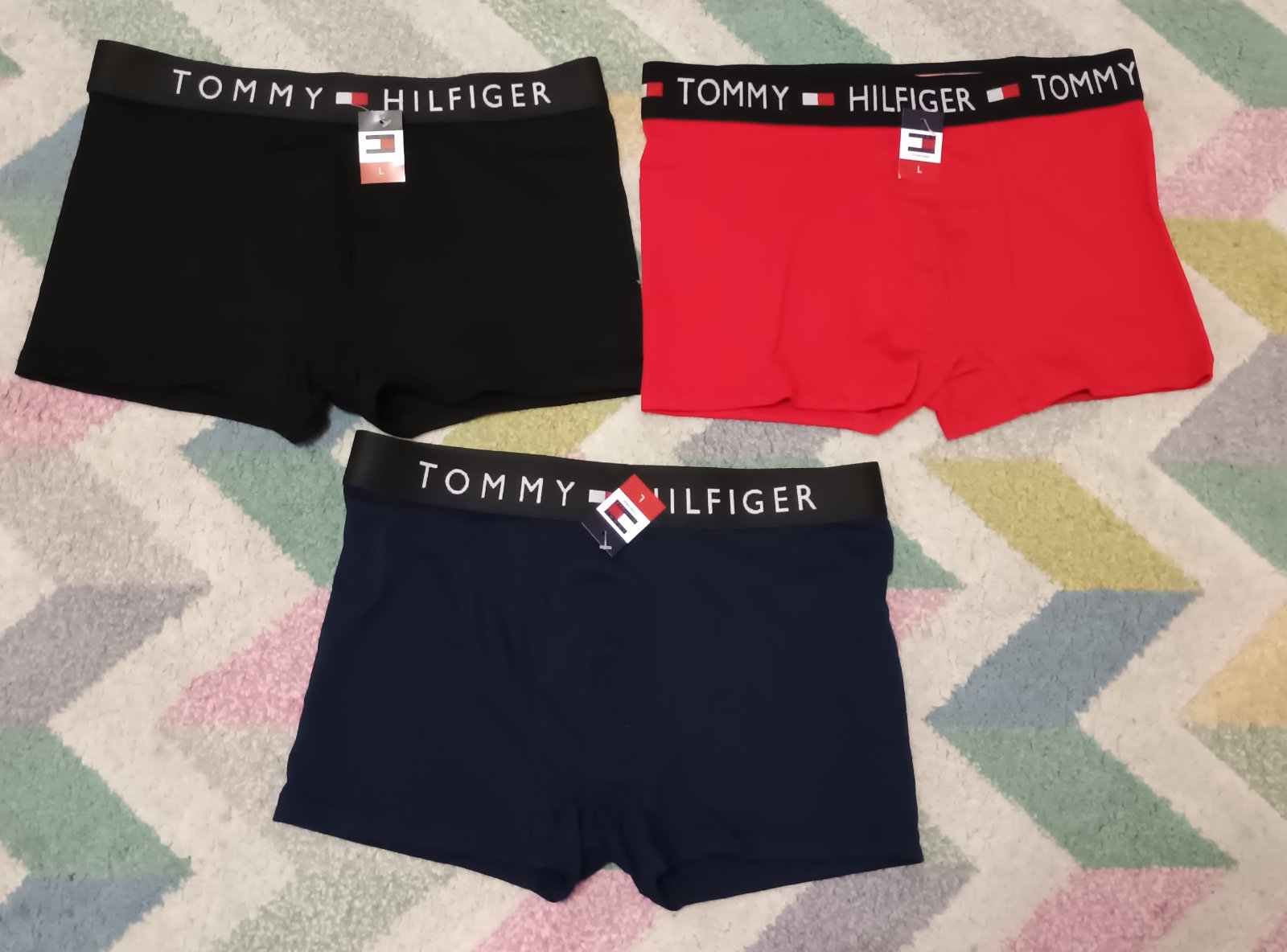 Nové ,nenošené ještě v originální krabici ,jsou bavlněné, krásné ,jsou tam tři kusy, černé,tmavě modré a červené,manžel dostal k narozeninám jako dárek, ale nevím zda je originál Tommy Hilfiger ,velikost uvedená L,ale sedí spíše na velikost M
