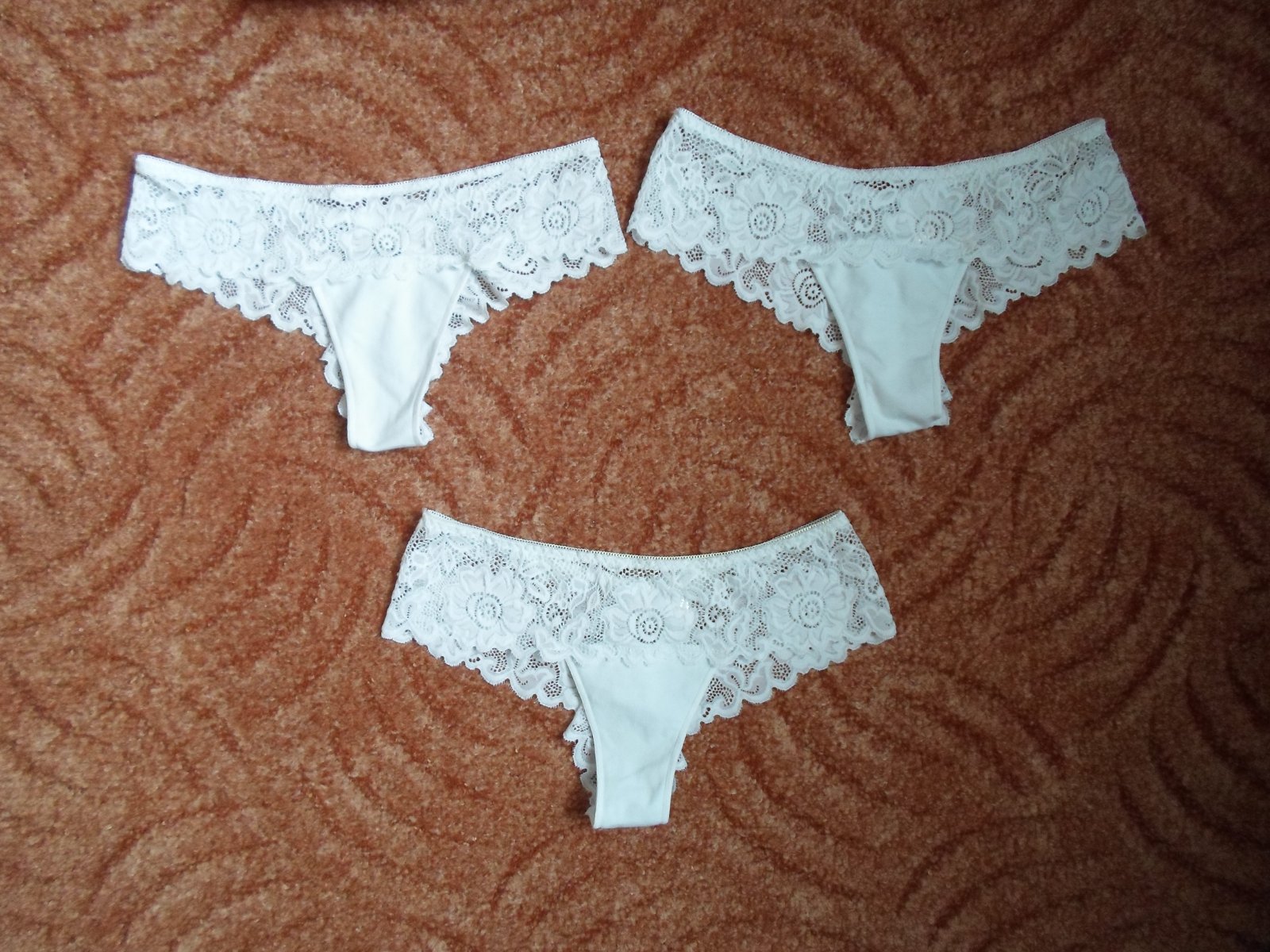 Nenošené jen vyprané, 2 kusy vel. L, jeden kus XL, ale jsou stejně velké. Celkově jsou menší. 95% bavlna, 5% spandex. Cena celkem.
