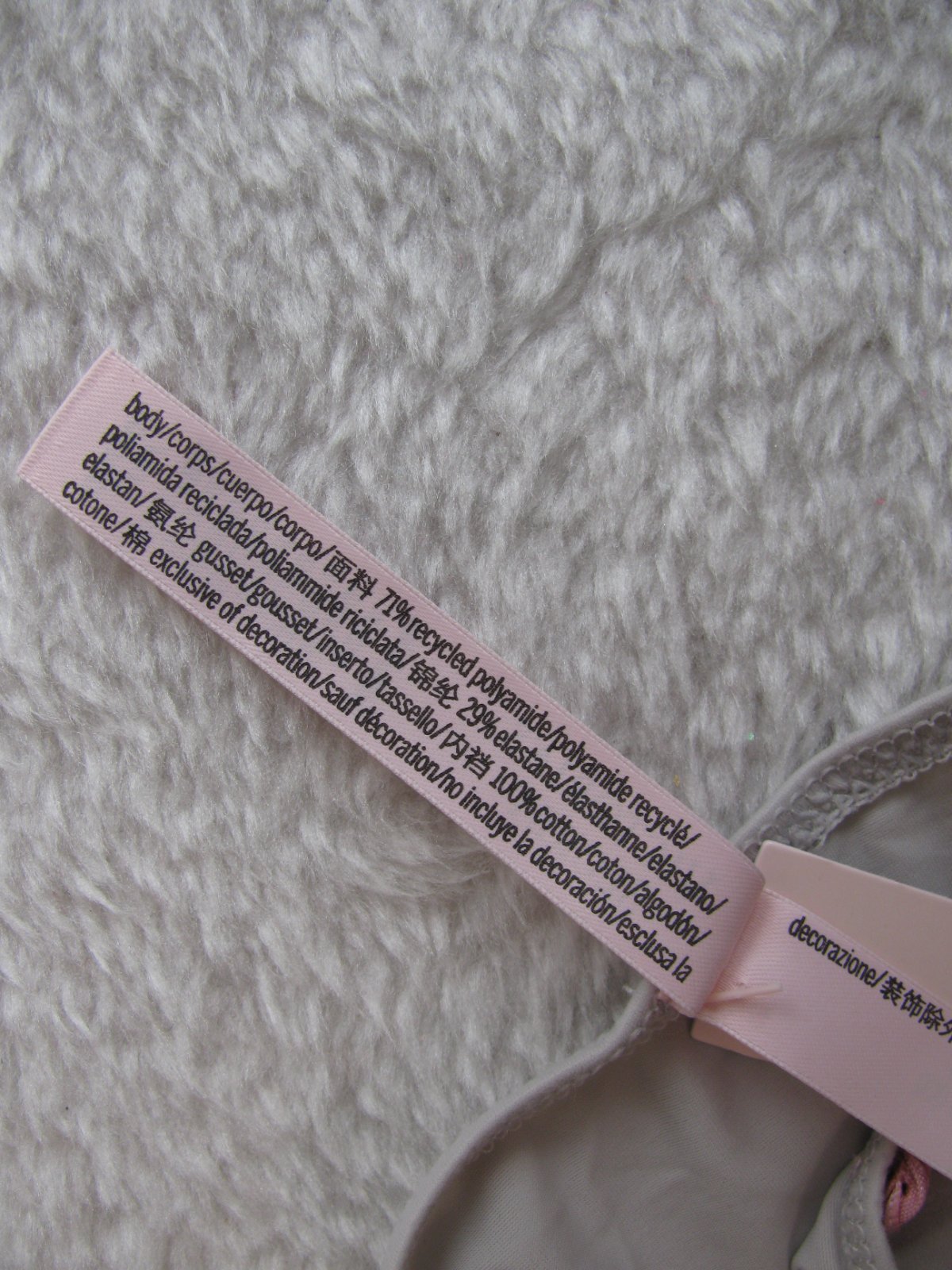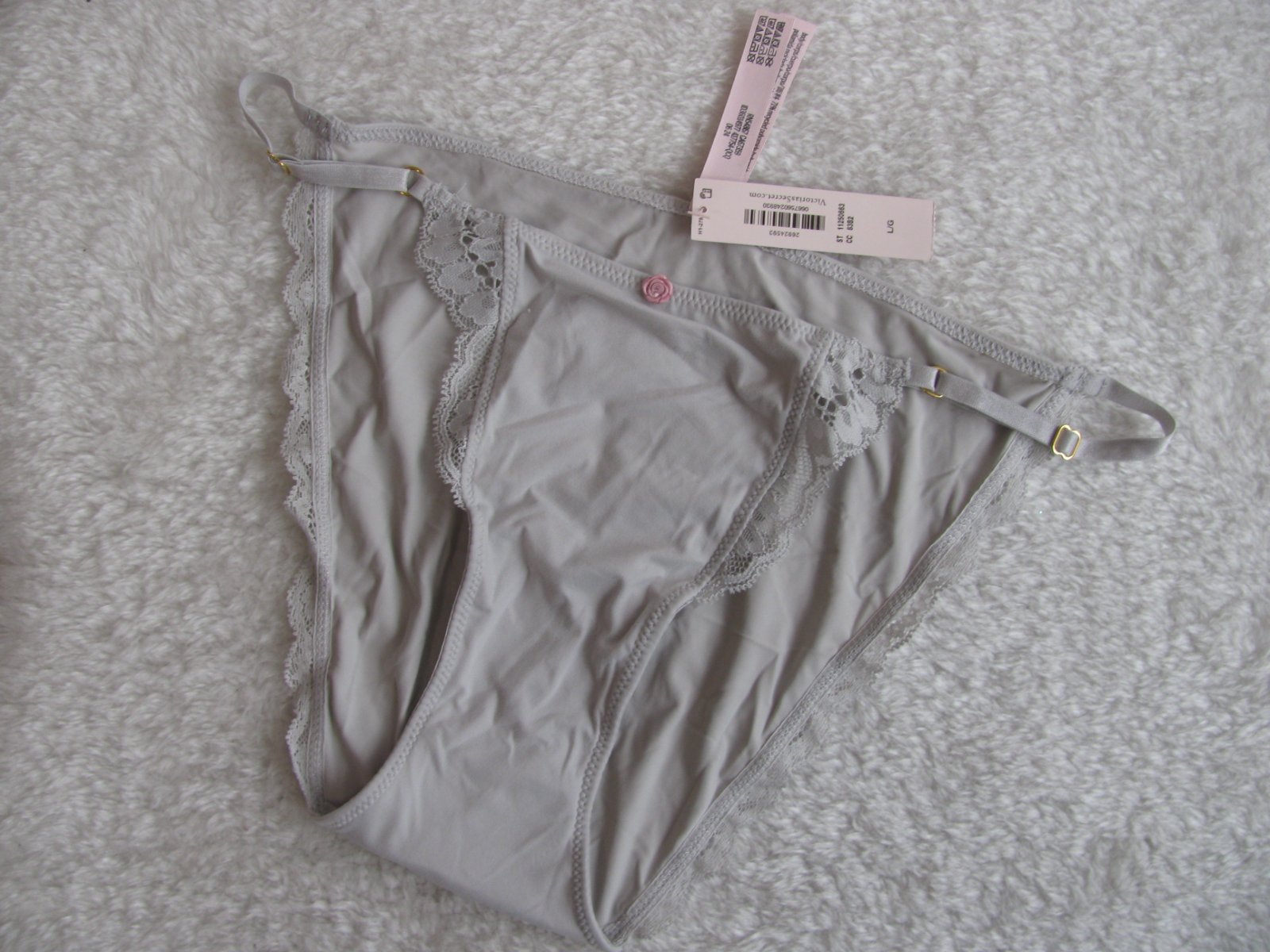 Luxusní světle šedé bikinové kalhotky, zdobené krajkou, přes boky gumička s regulací, 71% polyamid, 29% elastan. PC vysoká, viz DL. Musím prodat.