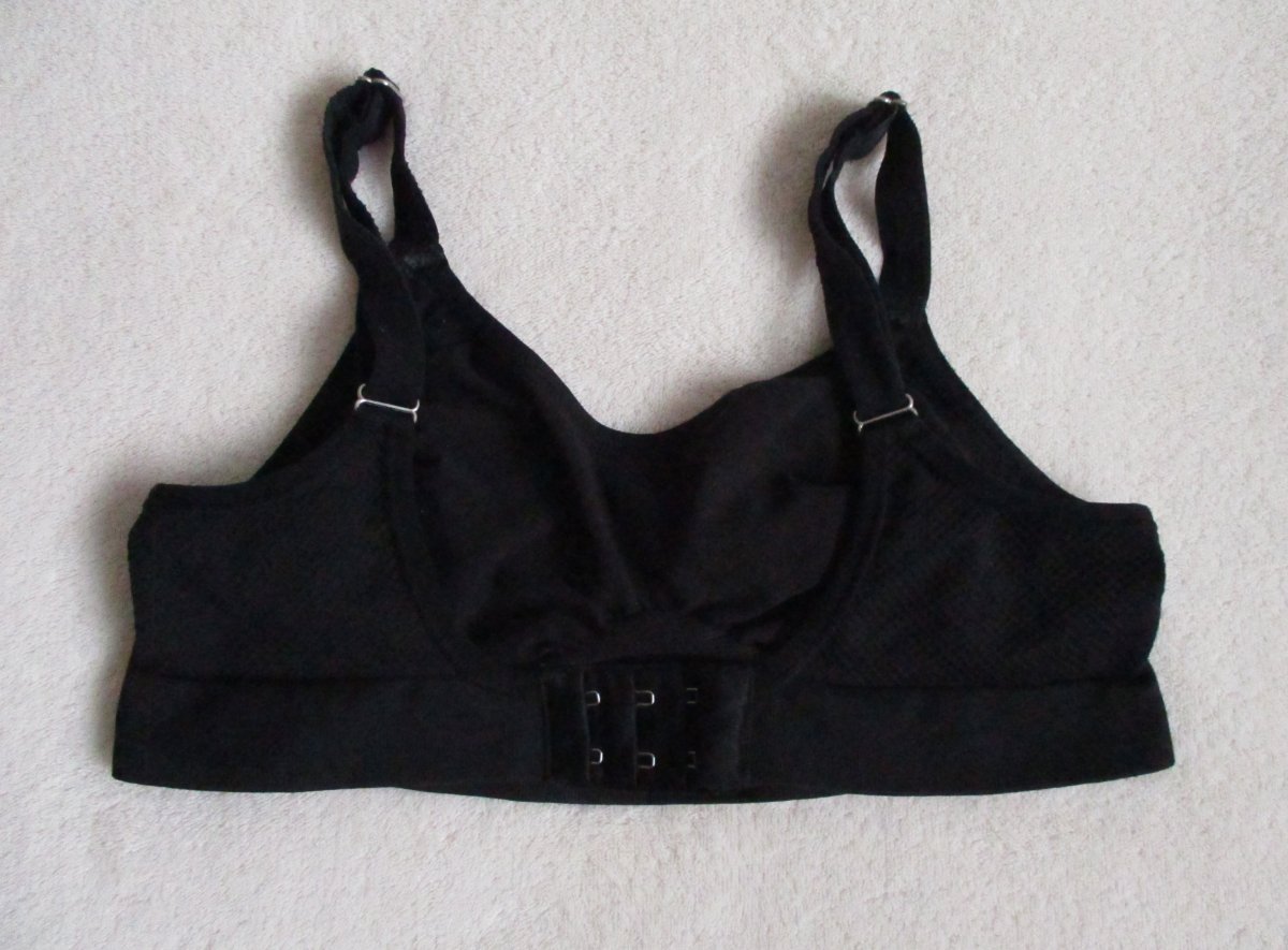Nabízím sportovní podprsenku zn. Tchibo, vel. byla uvedena 36/38, je však menší - dcera nosila ve 13 letech. Bez vad. Funkční - rychleschnoucí, bezešvá, velmi pohodlná. Pružný materiál. Šířka pod prsama: při zapnutí na první řadě háčků cca 64 cm, na třetí řadě háčků cca 61 cm. Natáhne se o 10 cm.