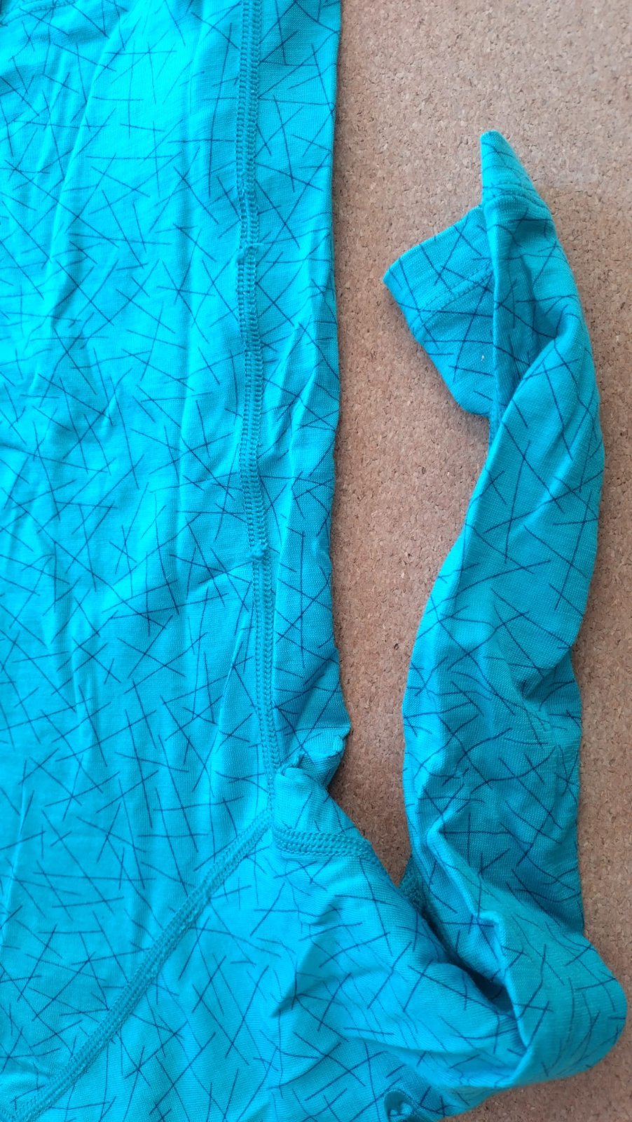 Kvalitní příjemné triko z merino vlny. Nošené, barevně nejednotné.