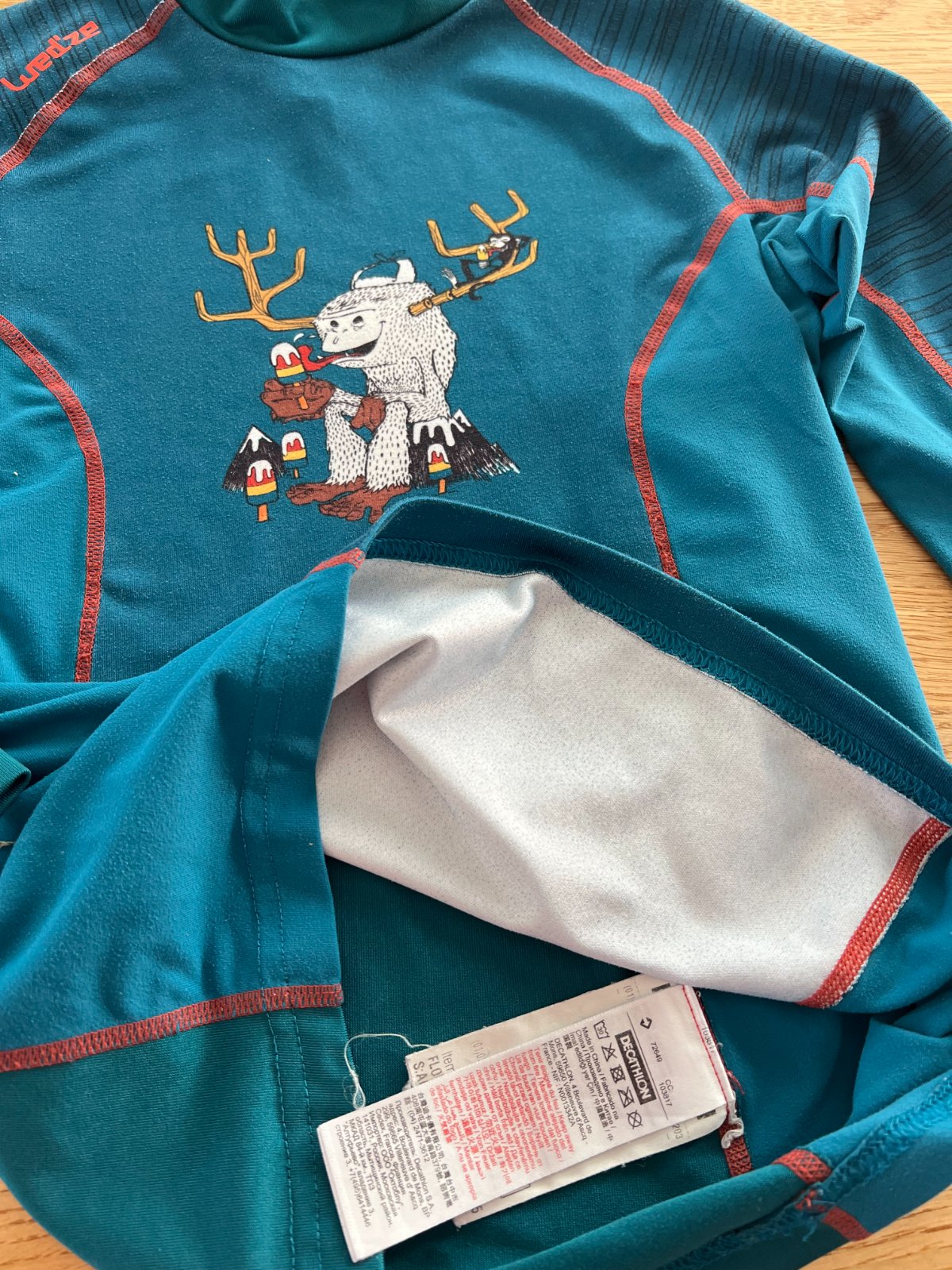 Nošené, prané, vady jsem na něm nenašla. Využívané jako spodní vrstva na lyže a brusle. Je elastické.