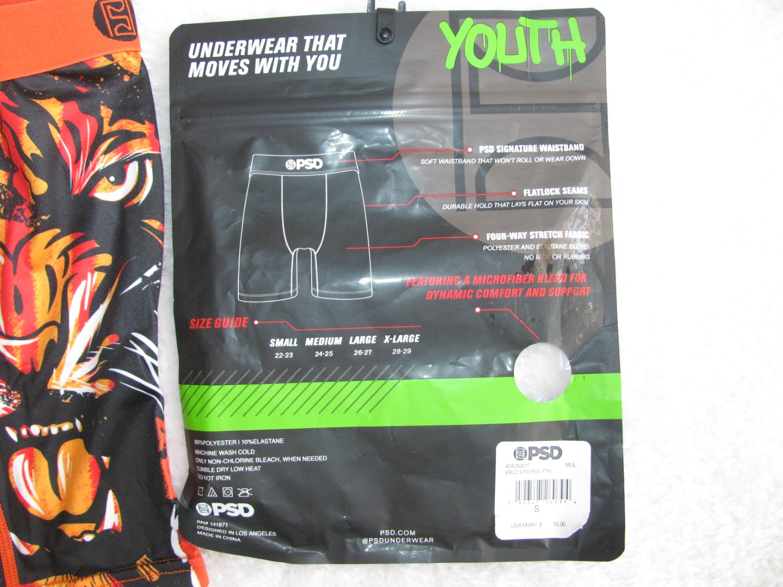 PSD Wild Stripes Youth Underwear. Chlapecké boxerky. Ultra jemné, ultra pohodlné. Chlapecké boxerky pro náročné, extra pružné, velmi prodyšné. Skoro je na sobě neucítíte. Ideální pro výkonnostní sportovní disciplíny a pro trendsettery. 90% polyester, 10% elastan. PC 400kč. Uvedená vel. S- SMALL.