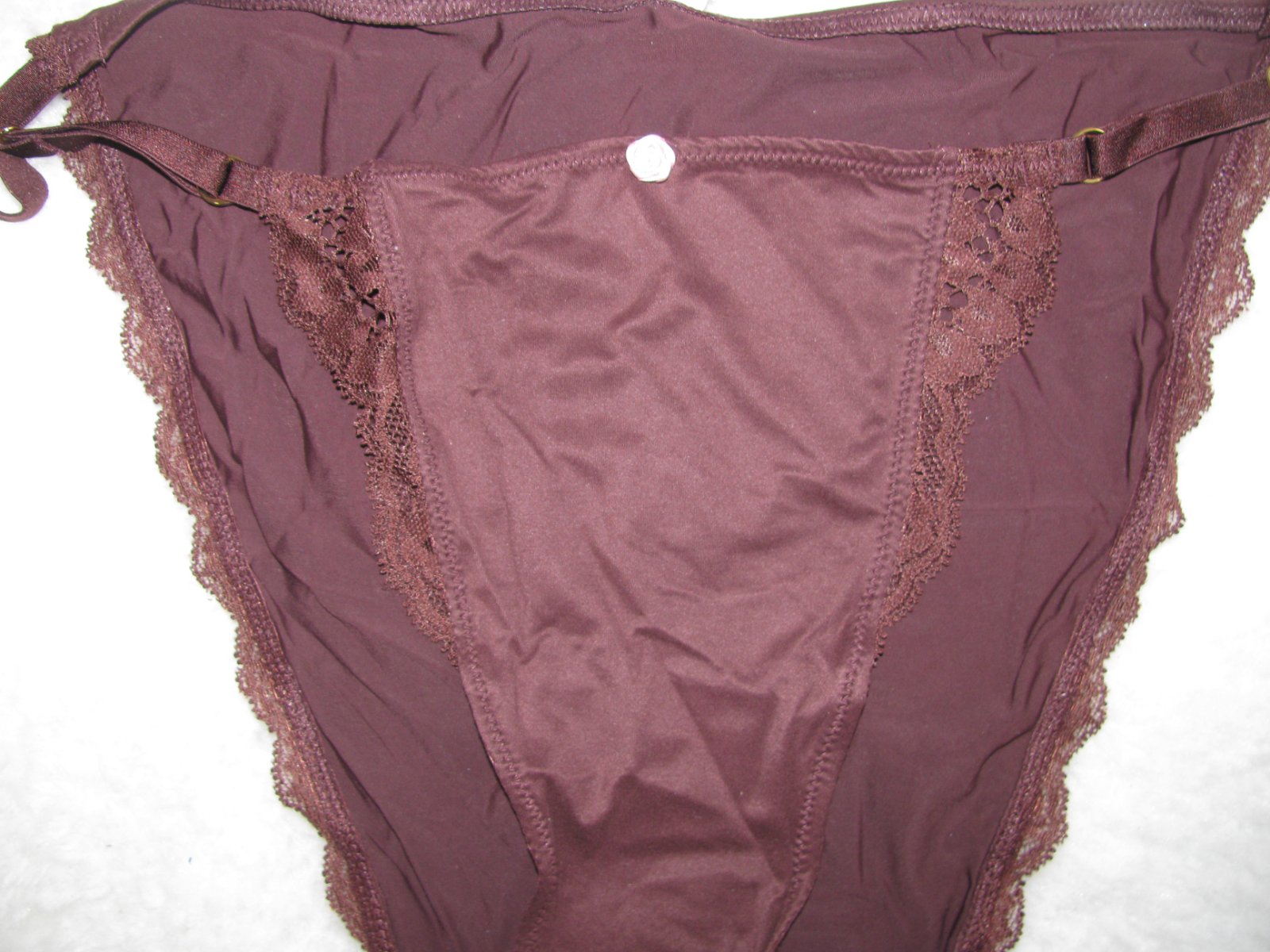 Luxusní bikinové kalhotky, s krajkou, na bocích pružná guma s regulací, reálná barva je nejtmavší foto, 71% polyamid,29% elastan. PC vysoká, viz DL.