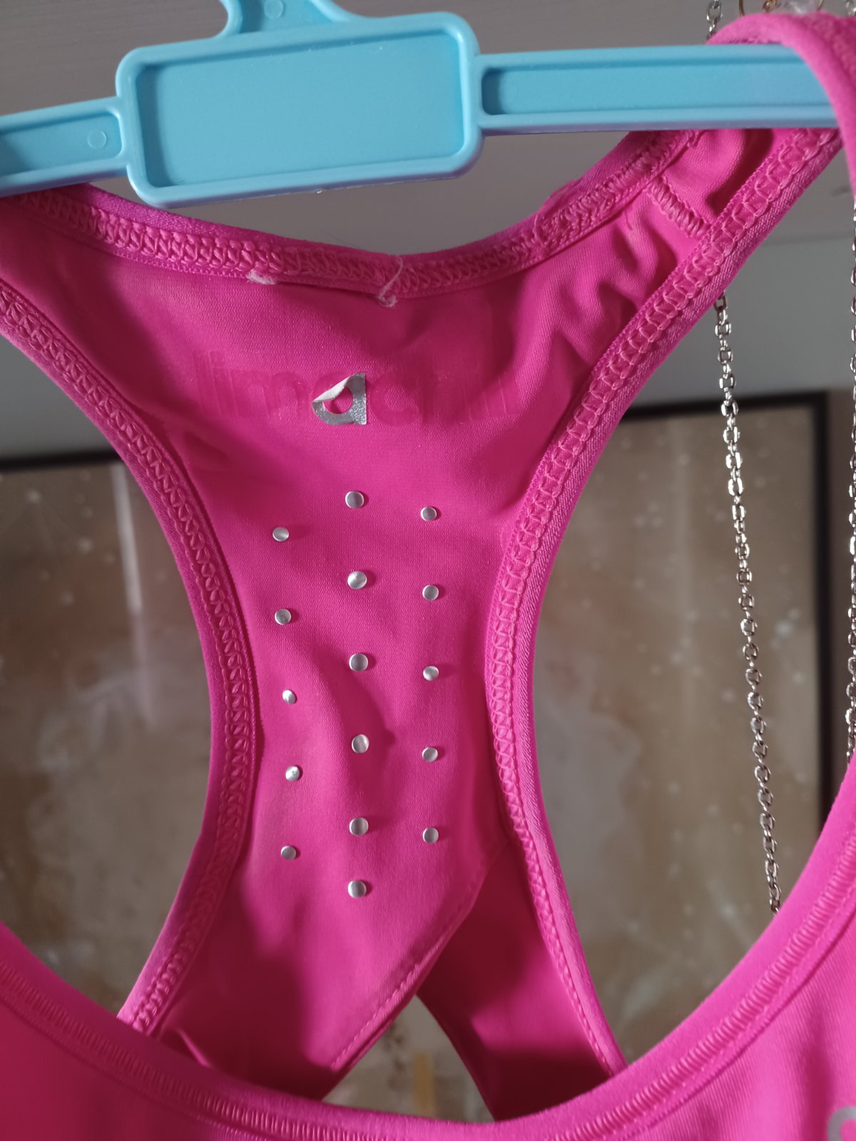 Krásná neonová sportovní podprsenka Adidas cca 158/164 nebo XS/S, zašpinění pod nápisem, zohledňuji v ceně, běžné známky použití.