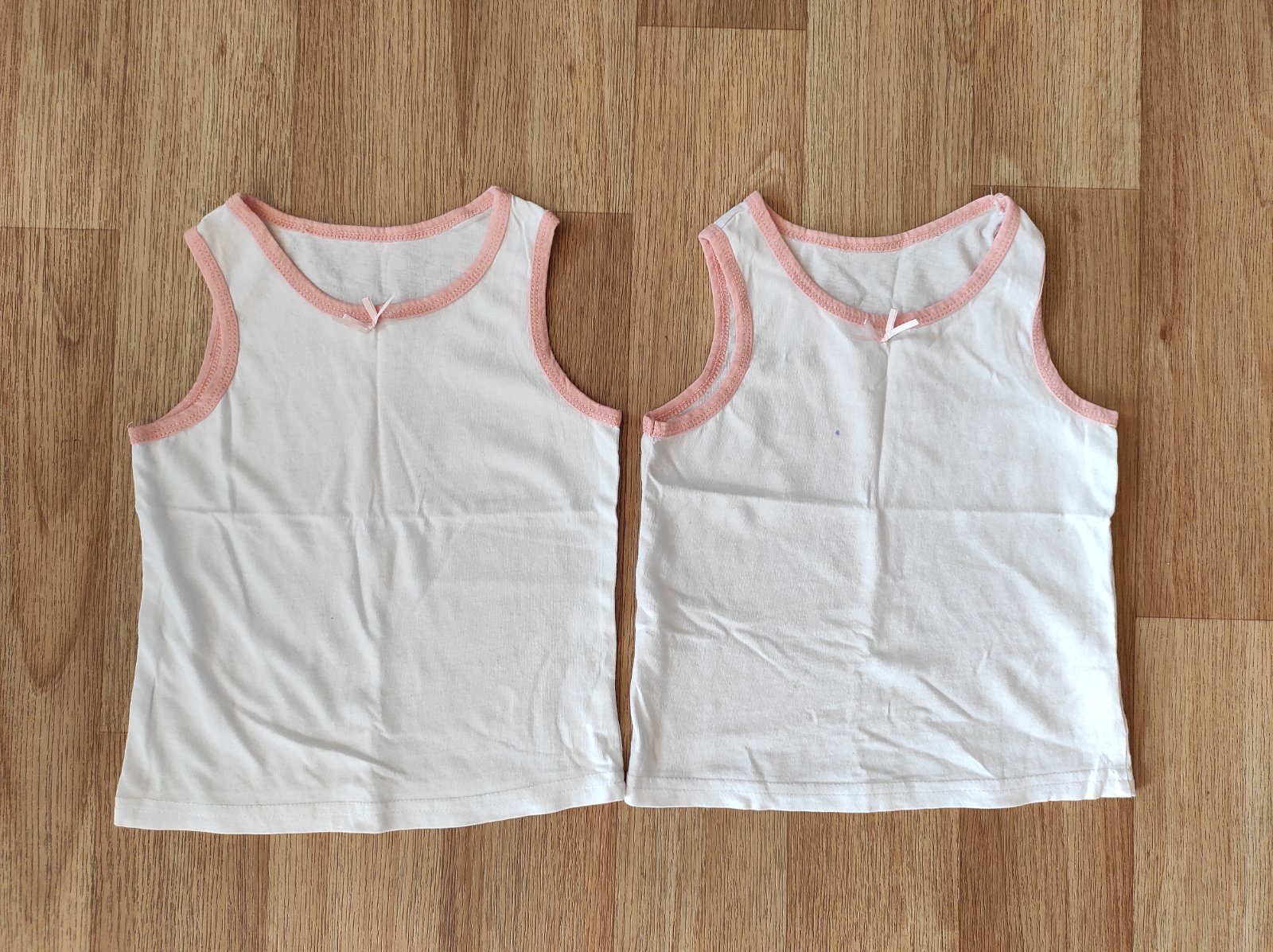 Prodám bavlněné spodní košilky. Bílá na ramínka velikost 102 (4roky) Bílá s medvídkem má ustřiženou cedulku, ale velikostně je stejná. Délka 38cm Šíře přes hruď 23cm Bílá na ramínka je bez vady,...