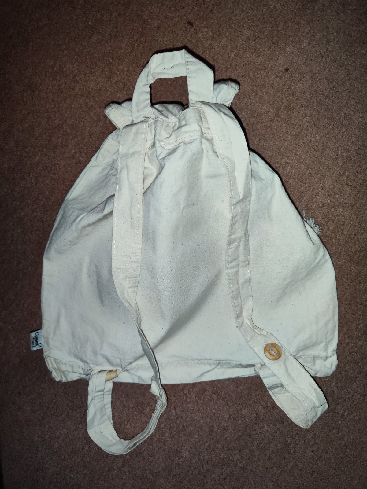 Prodám lehoučký batoh z organické bavlny, rozměry výška 37 cm; šířka 30 – 35, 5 cm. Zavírání stahovací šňůrkou a klopou na knoflík. Přijde vhod vždy, když potřebujete sbalit tenisky do posilovny, přezůvky nebo jen pár sešitů do školy. Cena 40 Kč, v Brně možné osobní předání.