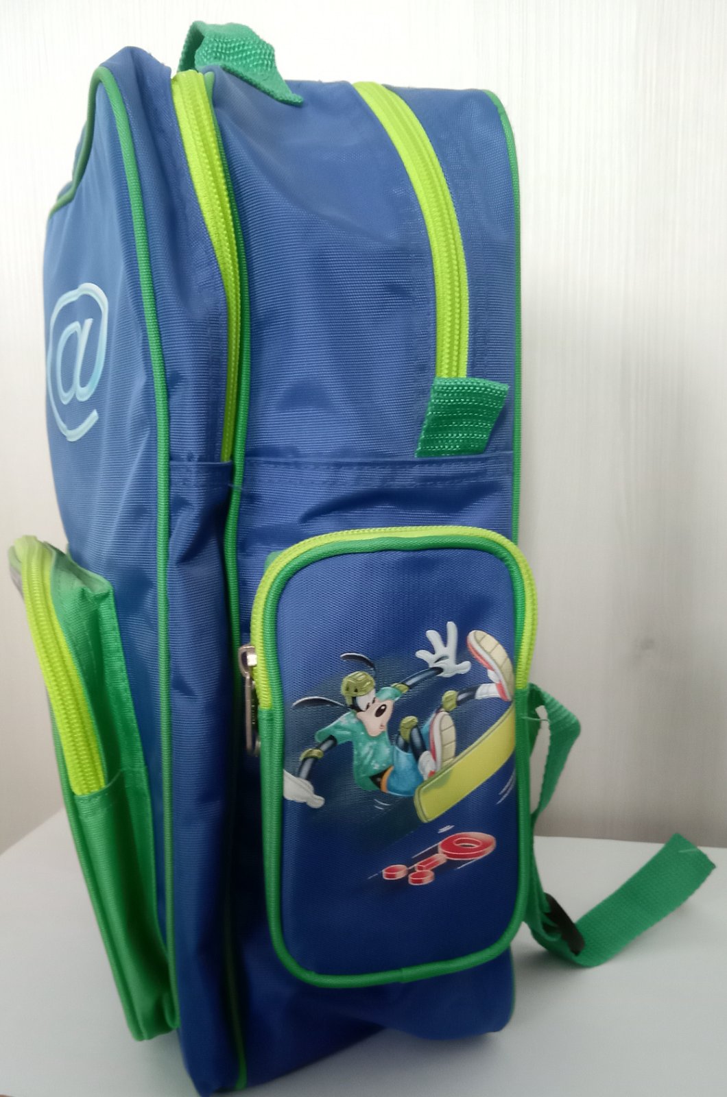 Prodám dětský batoh Donau má 1 velkou, 1 menší a 1 malou kapsu vepředu, 2 malé kapsy po stranách, všechny kapsy jsou na zip. Na přední kapse je obrázek Mickey Mouse a kačera Donalda. Na bočních kapsách je Miniie a pes Goofy.