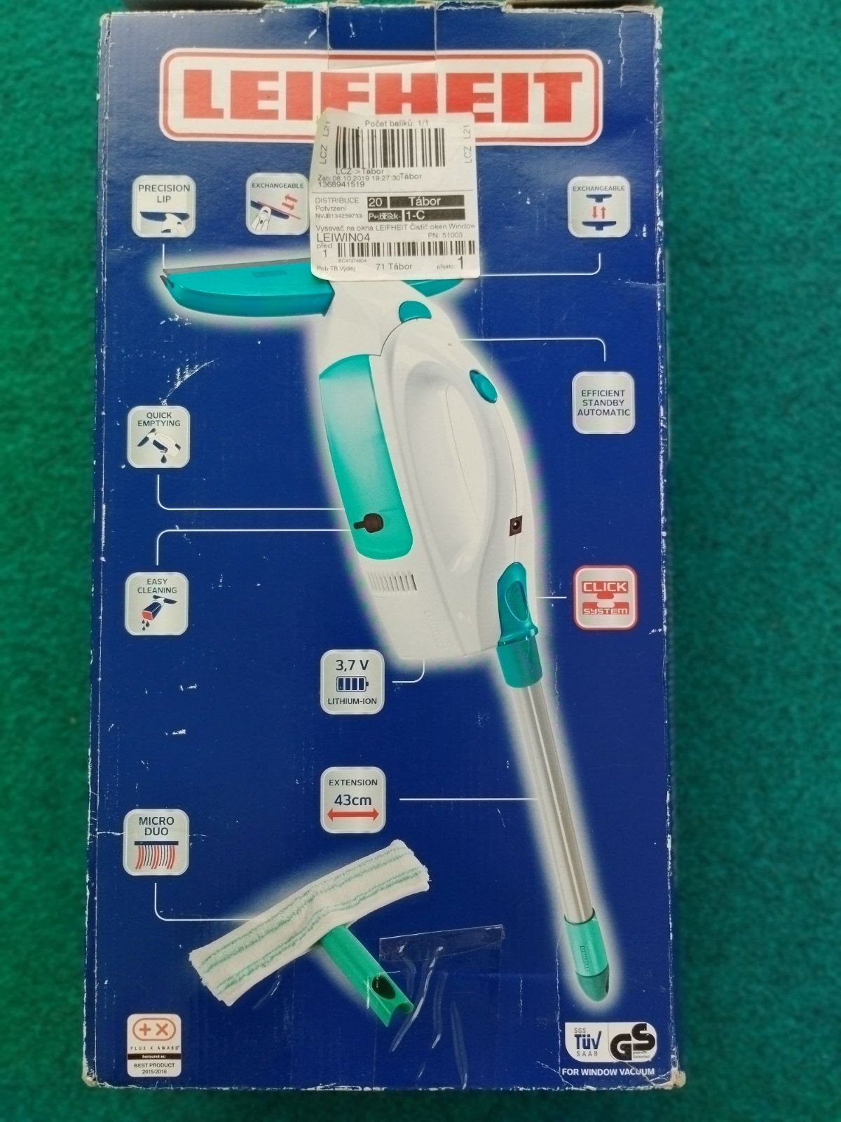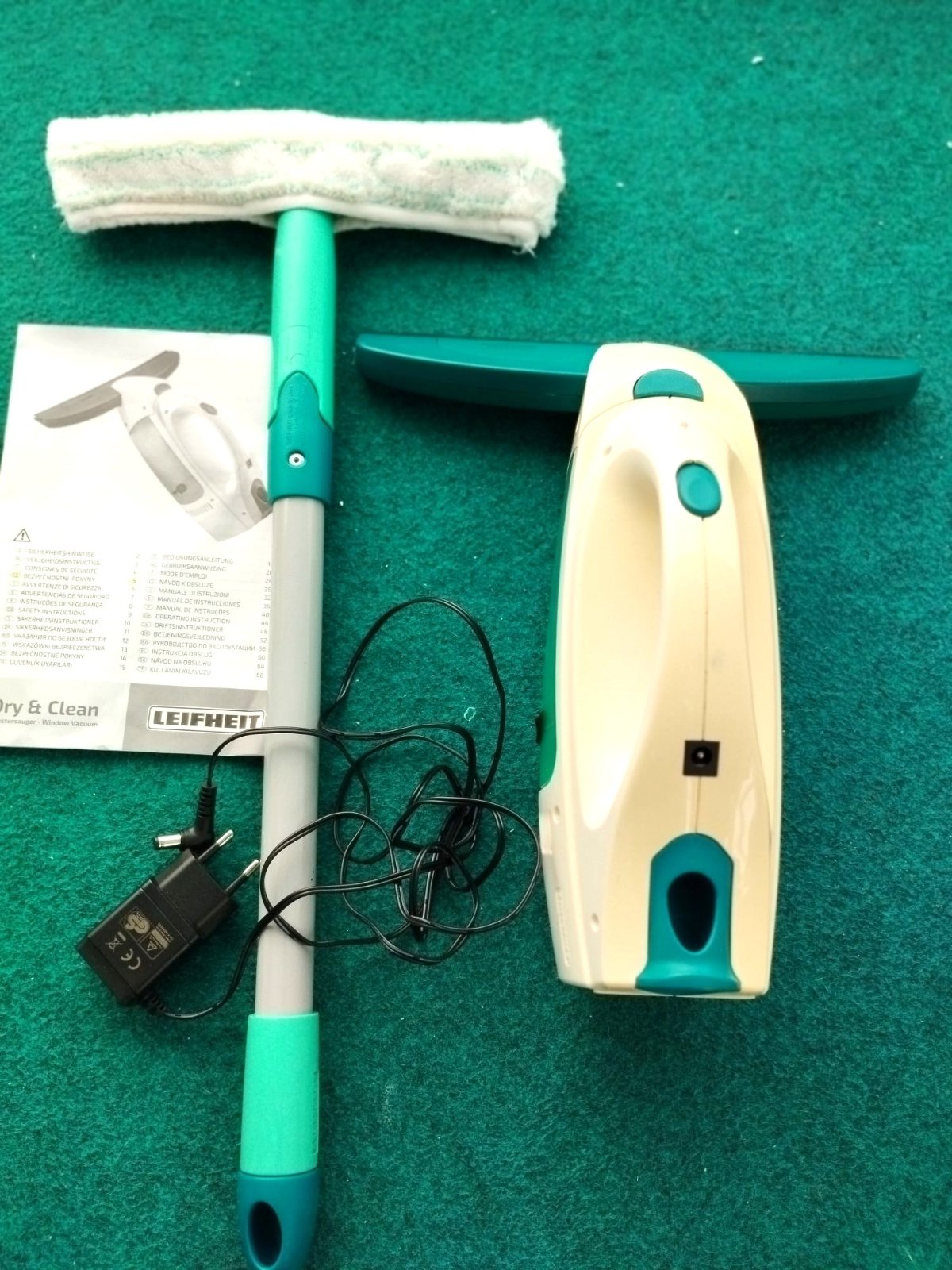 Prodám ruční vysavač oken/elektrickou stěrku na okna značky Leifheit s tyčí včetně všeho příslušenství (vysavač se stěrkou - šířka gumové stěrky: 28 cm, tyč, mop, nabíječka, vyjímatelná nádoba na špinavou vodu) + vč. dvou nových silikonových stěrek navíc. Čištění oken díky elektrickému odsávání vody, click systém. Originál krabice a návod, párkrát používaný, ale plně funkční. Vhodný na všechny druhy skleněných povrchů a dlaždic. Cena: 550,- Kč. Osobní předání v Praze, platba v hotovosti.