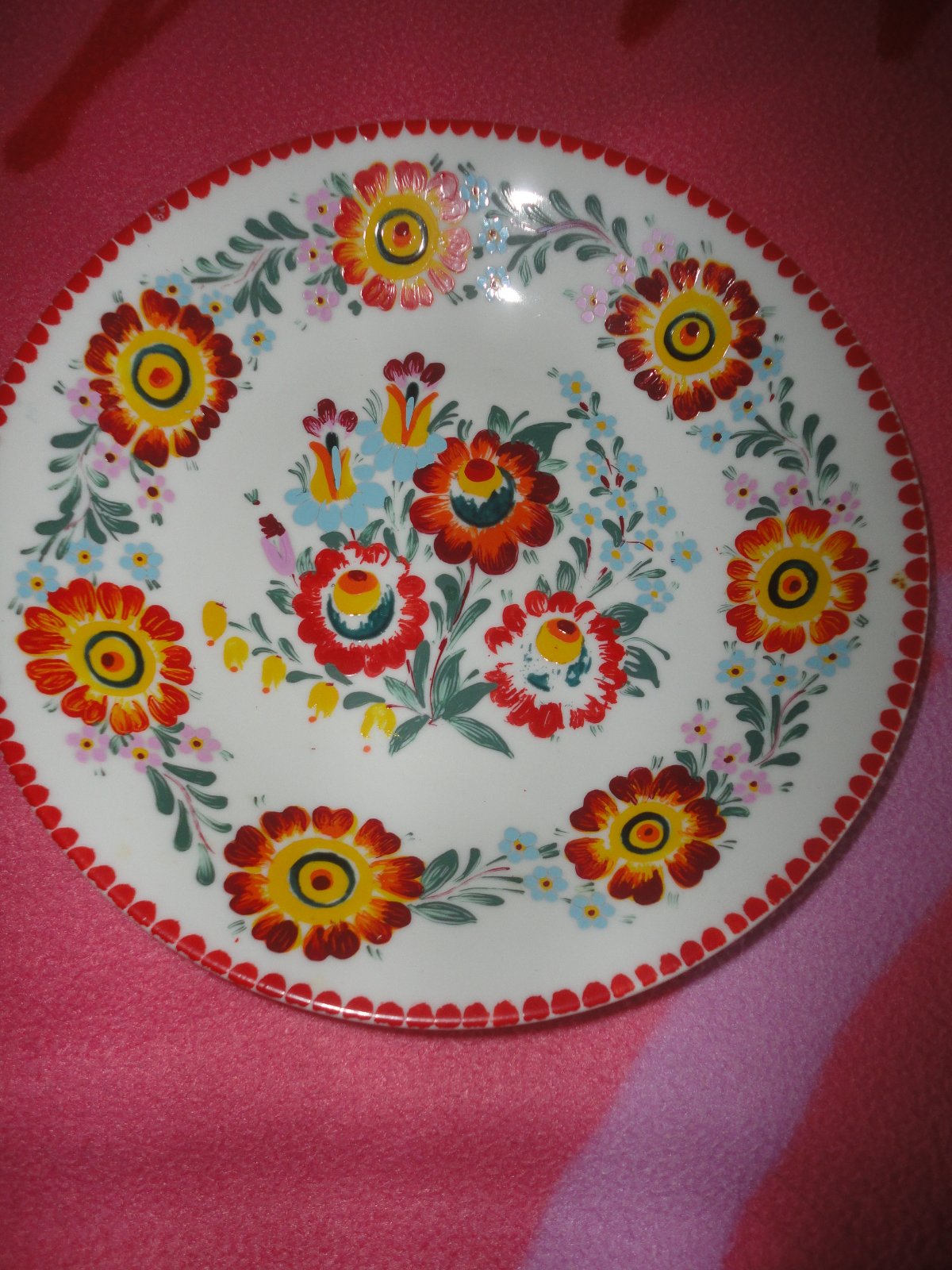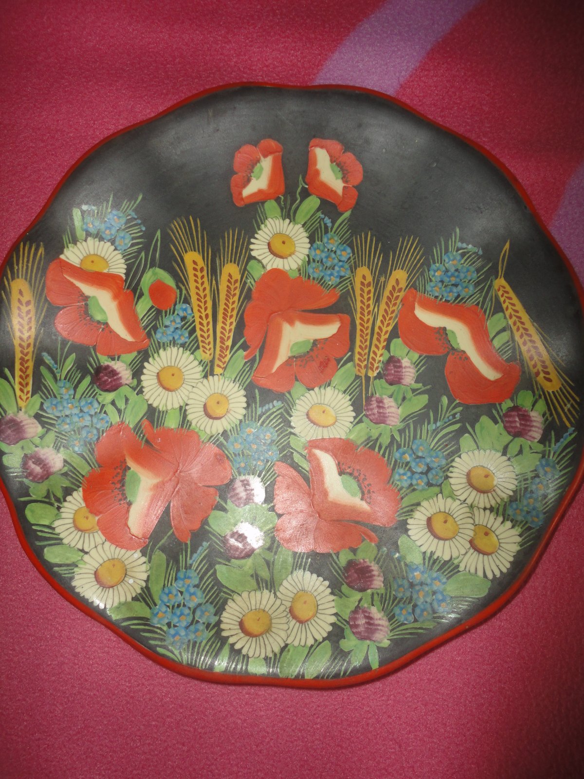*Ručně malovaný chodský talíř s vlčími máky bez vad, průměr 28cm, s originál nálepkou Domažlice, cena 190Kč.
