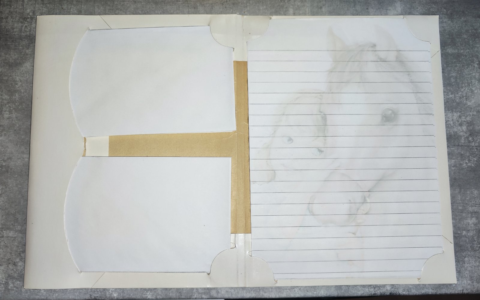 43 listů dopisních papírů, 10ks obálek, 2 obaly