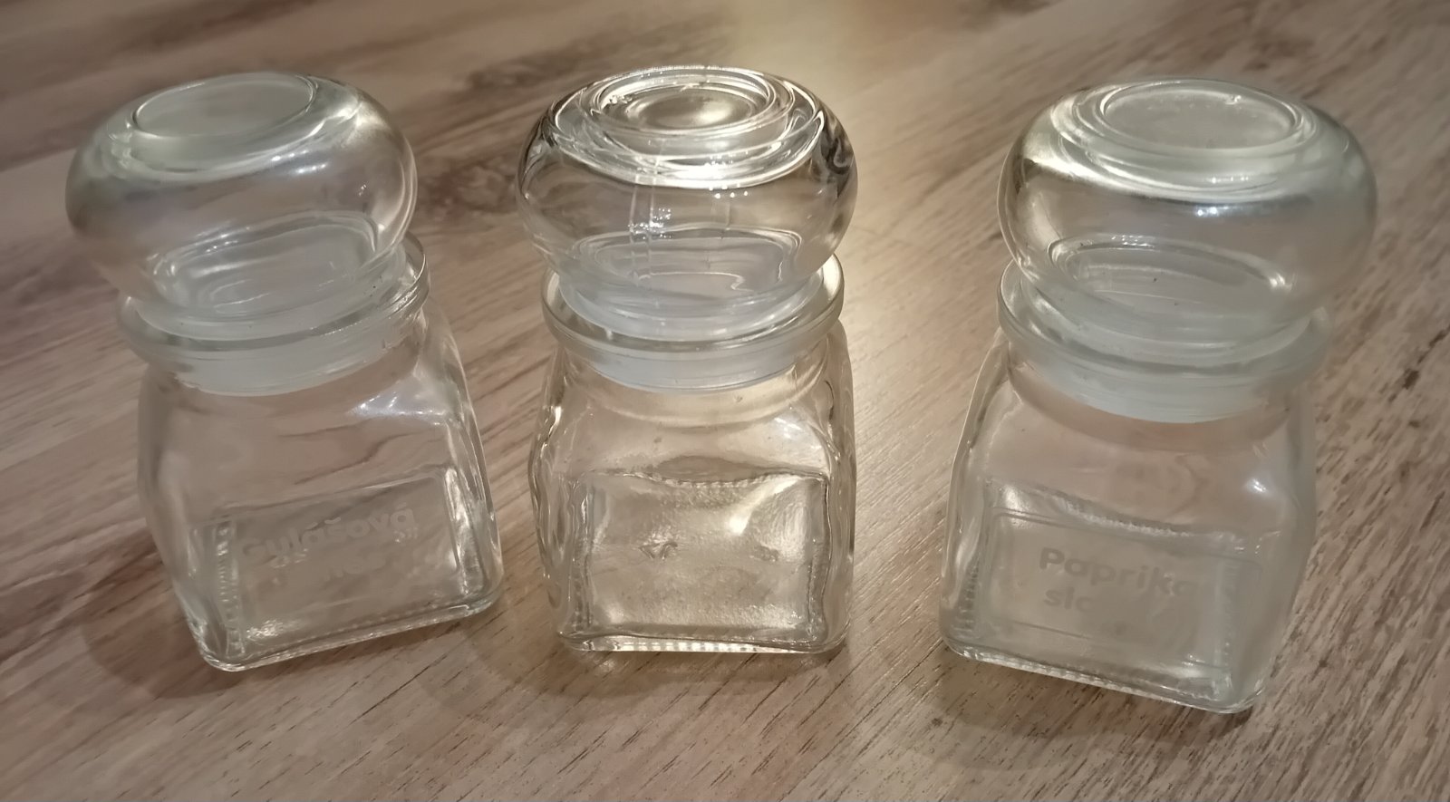 Jedna bez nálepky ta je nepouživaná ale má rýhu na skle viz foto.Nálepky s nápisy jdou sundat.