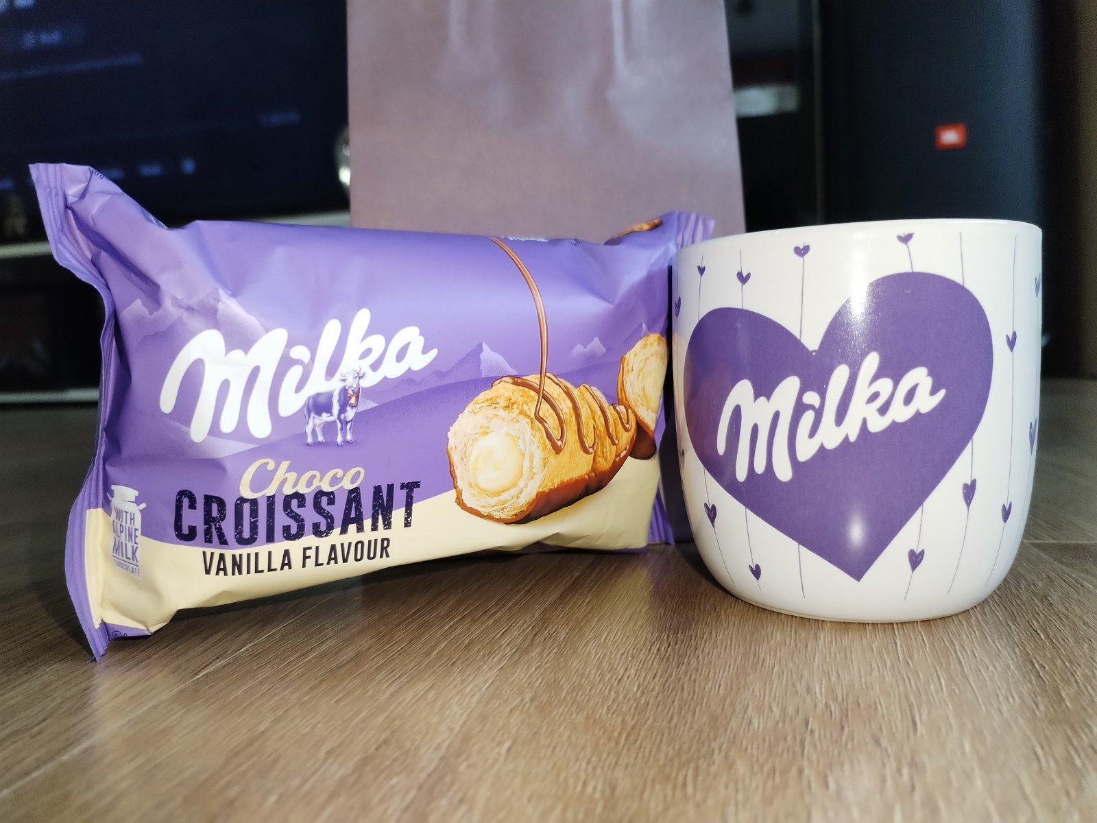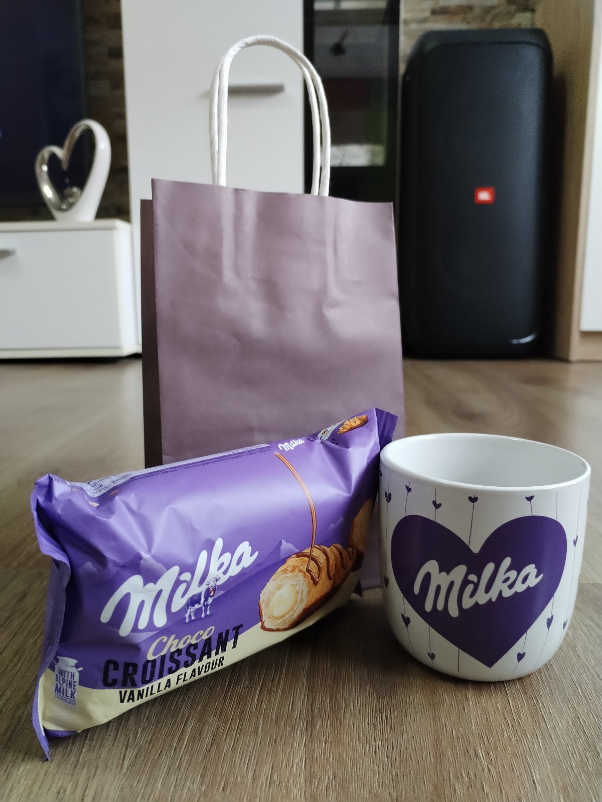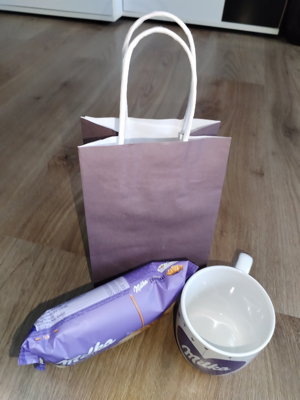 Porcelánový hrneček Milka 200 ml nový a nepoužitý + ZDARMA Milka croissant a taštička. Jen tak pro radost, z lásky. Cena 100 Kč