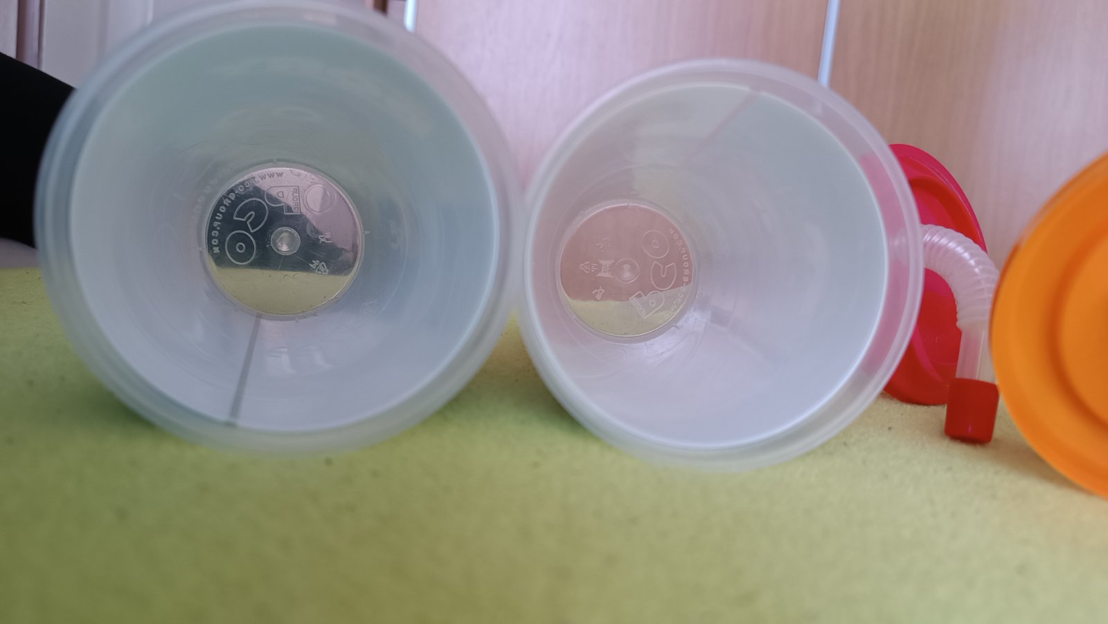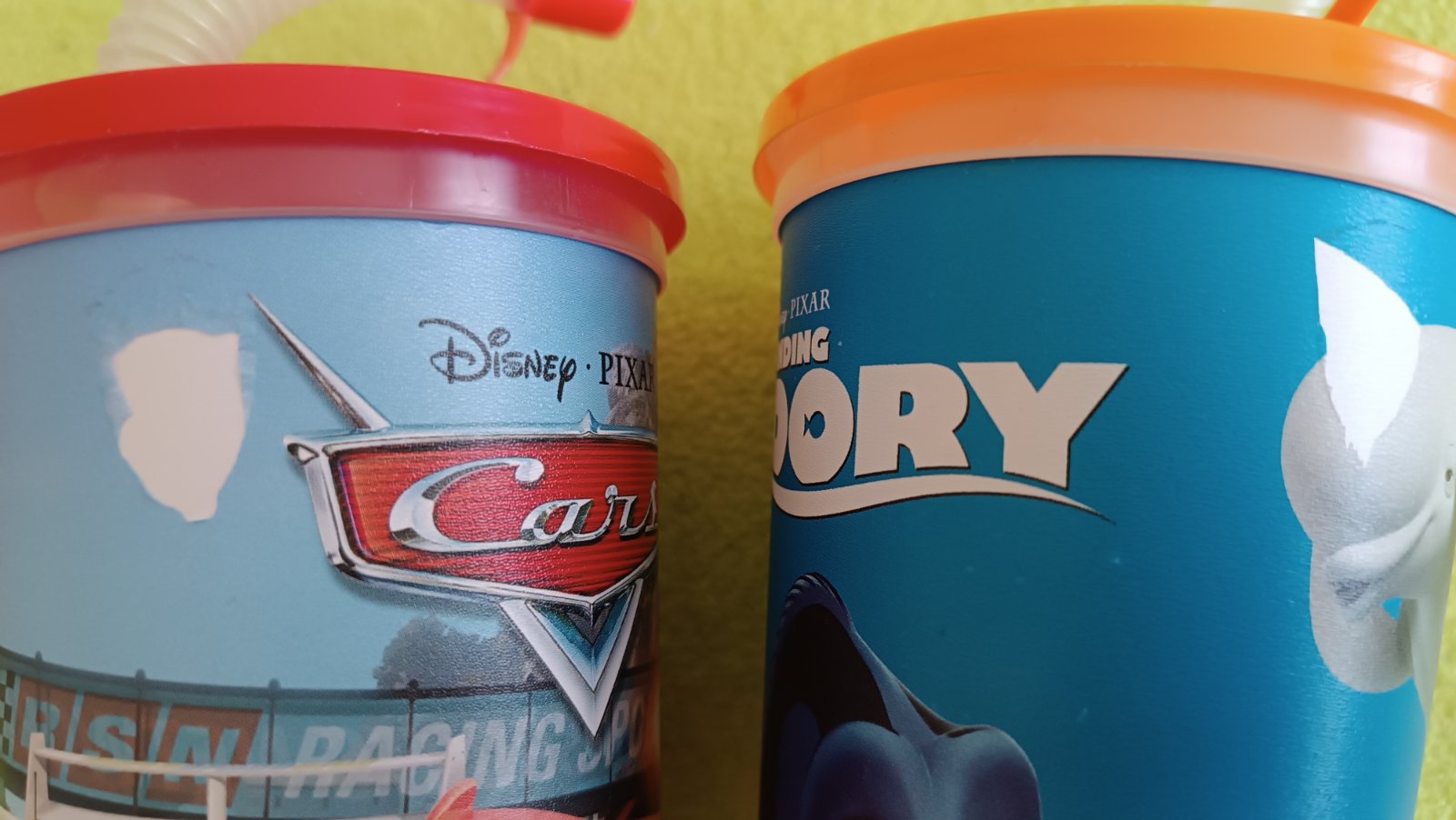 Objemově to jsou půllitry. Jsou v dobrém stavu, jen má každý trochu odloupnuté obrázky, protože víčka byla při nákupu přilepená ke kelímku izolepou a bohužel se obrázky poškodily - nafoceno. Jinak v pořádku. Plast. Brčka mají zátku proti hmyzu. Víčka dobře drží a dobře jdou i sundat. Kelímky byly málo používané. Cena 40Kč za kus.