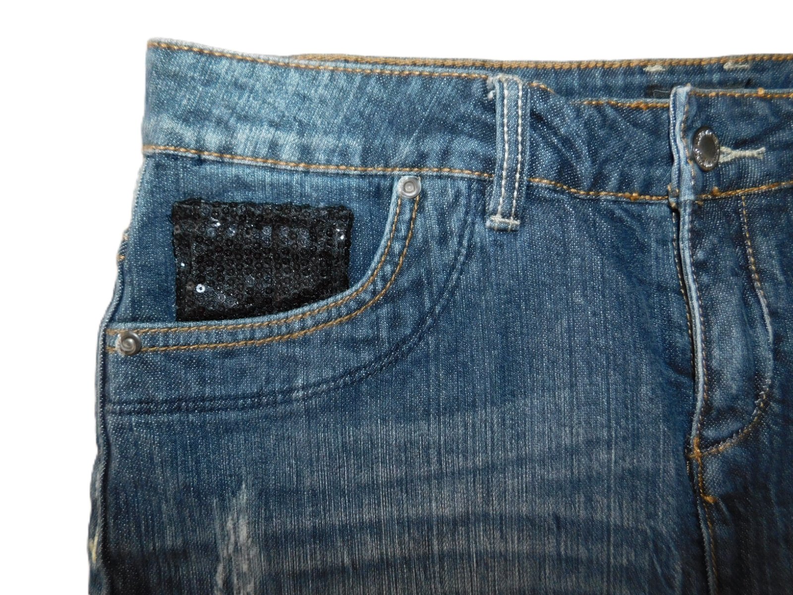 Krásná dámská elastická džínová mini sukně ... nová s náhradním knoflíkem, bez visačky .... zapínání zip a knoflík ... po celé sukni najdete ozdobné detaily ... přední i zadní díl má kapsy ... vyrobena je z 98% bavlny a 2% elastan .... velikost psaná L ....