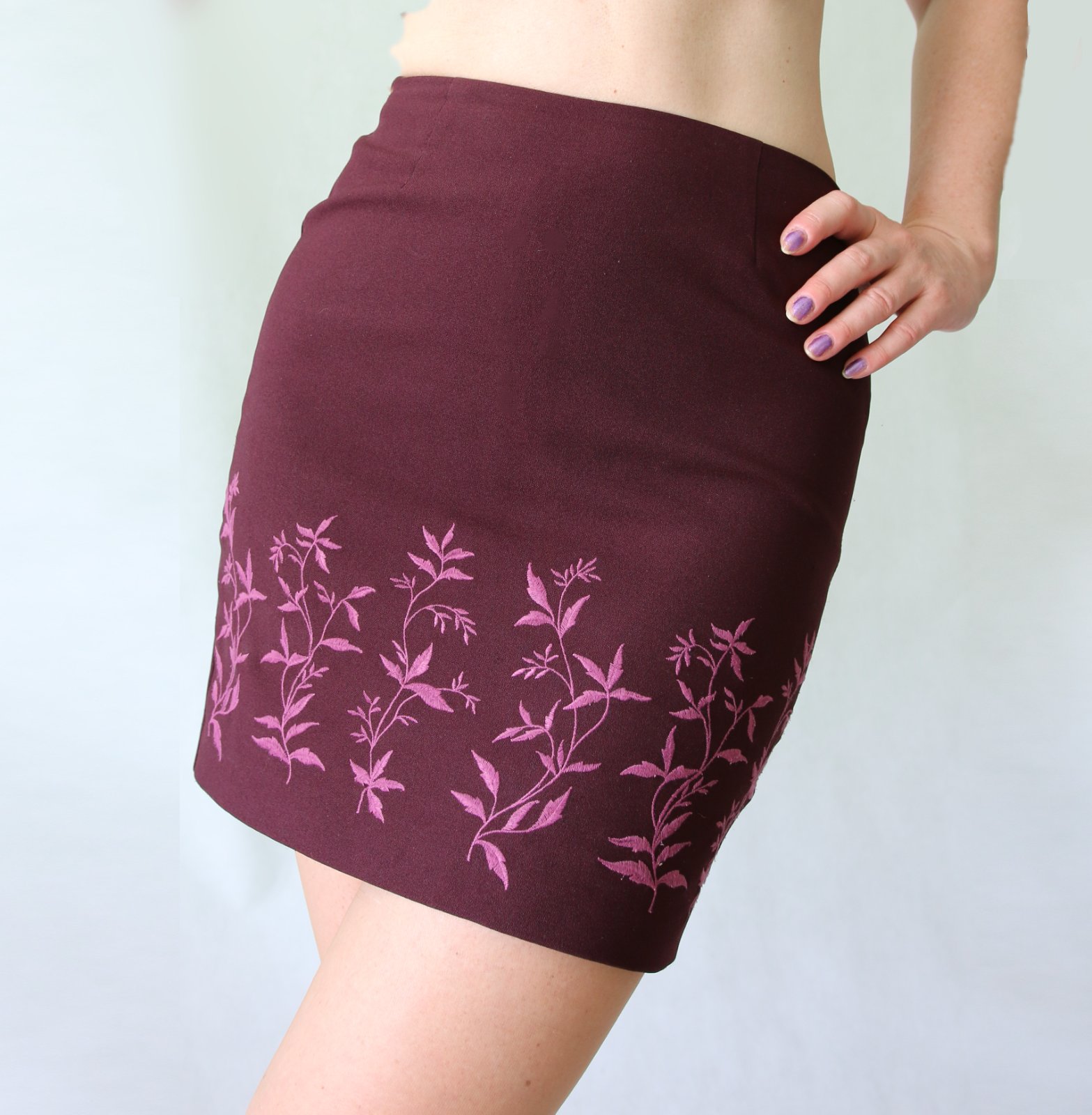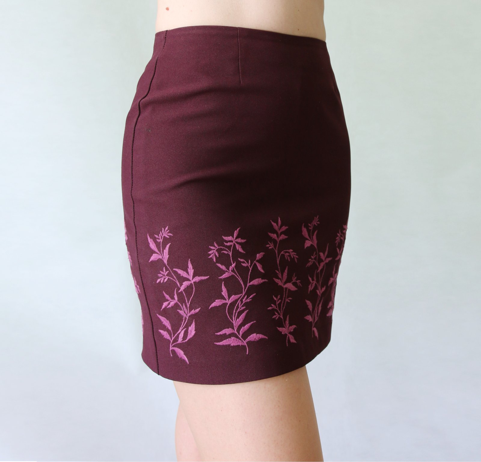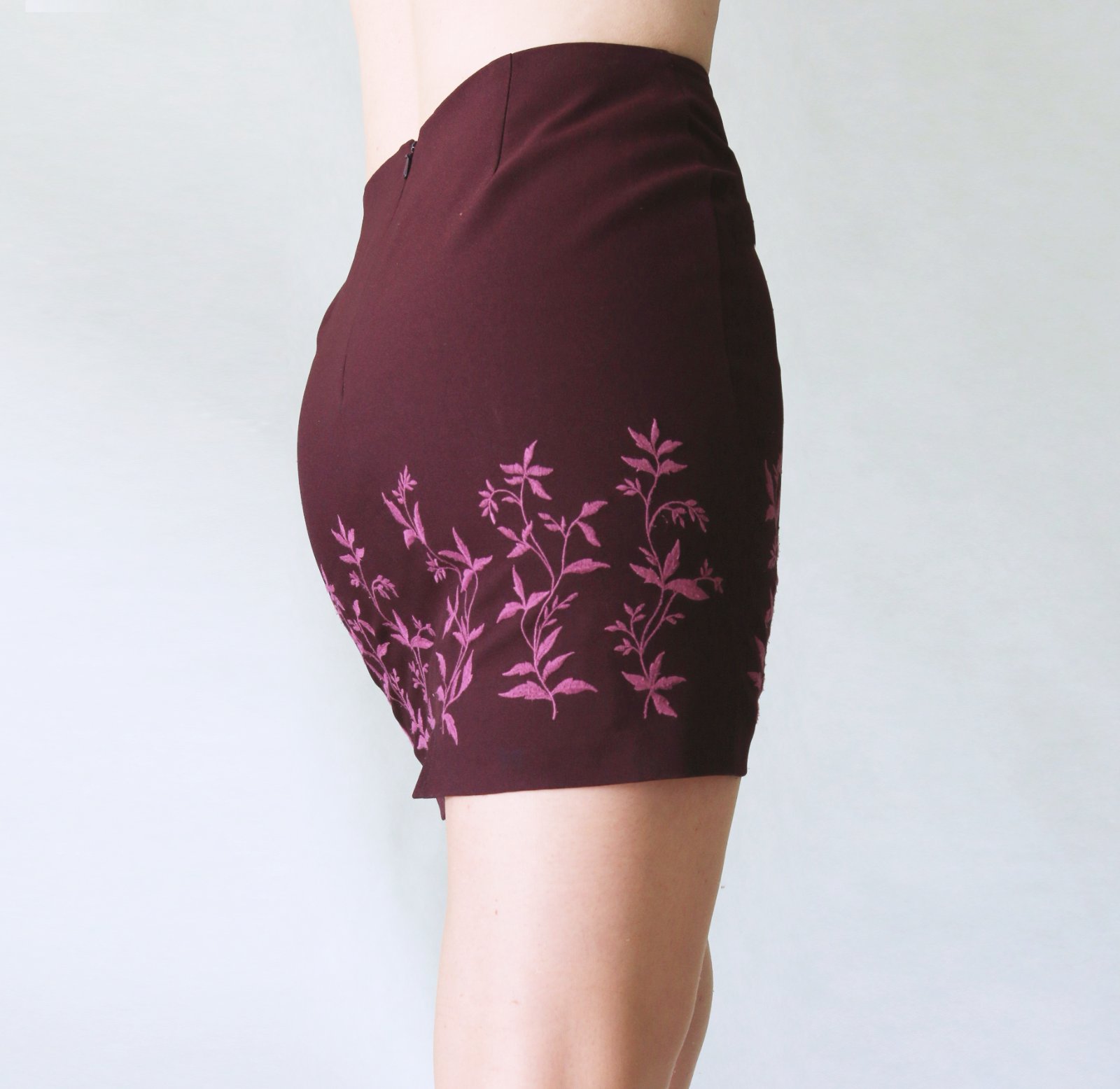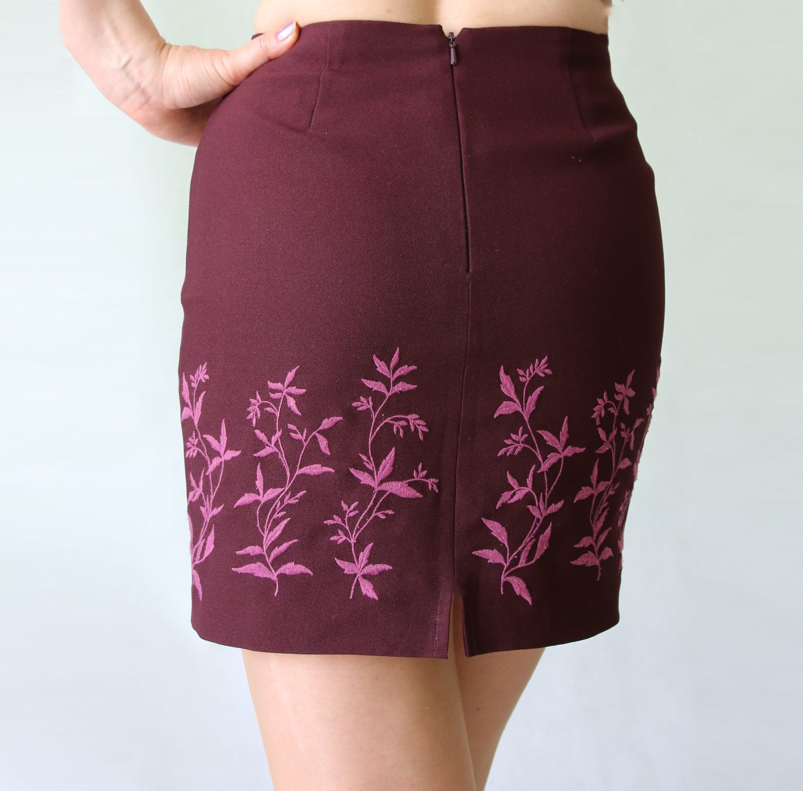 Vínová minisukně s výšivkou vel.S