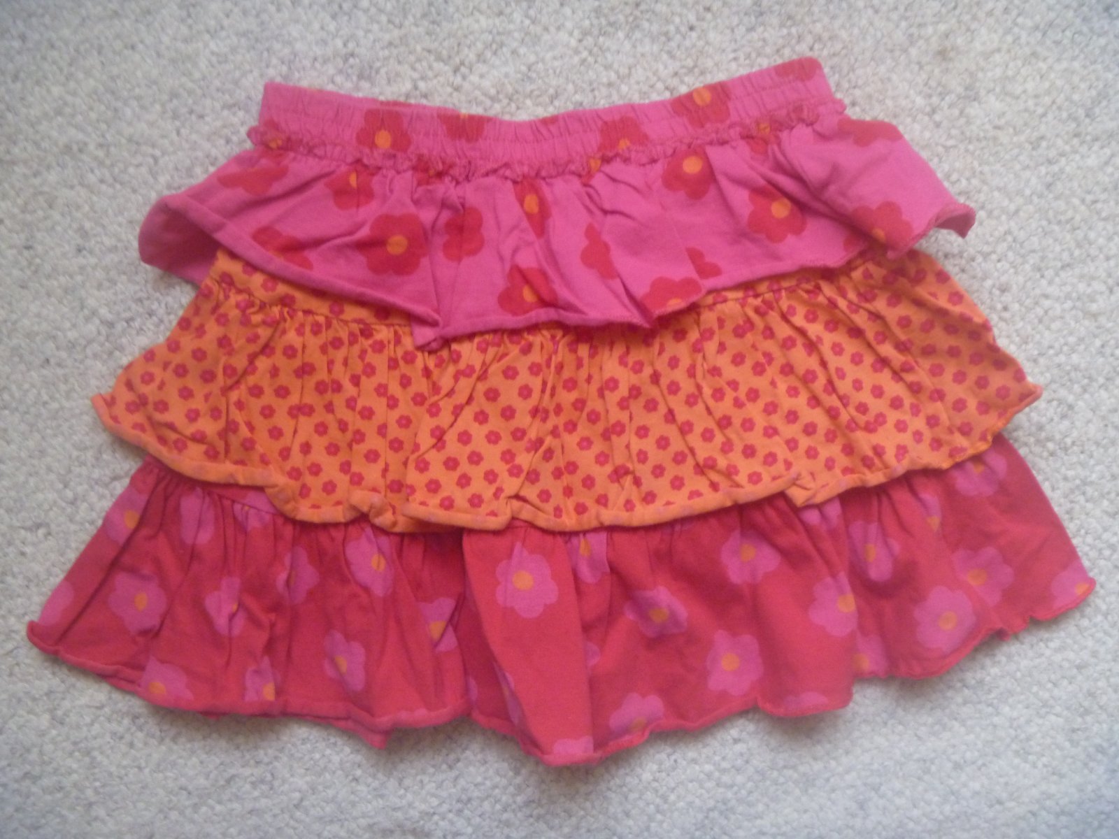 Prodám růžovou sukýnku s kytičkami, 3 řady kanýrků, v pase guma, značka F&F, velikost 122 (6-7 let), materiál 100% bavlna, dobrý stav.