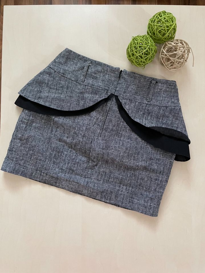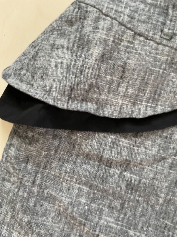 945. nabízím k prodeji tuto krátkou sukni s volánem, vel 10/38/M ale je menší, řekla bych spíše S - měřte, Atmosphere. Šedá, barva pepř a sůl, s volánem. Pas pevný, na zip. silonová podšívka. Materiál s podílem lnu: 45% bavlna, 31% len, 24% raimi. Podšívka polyester. Nošená, bez vad, krásná